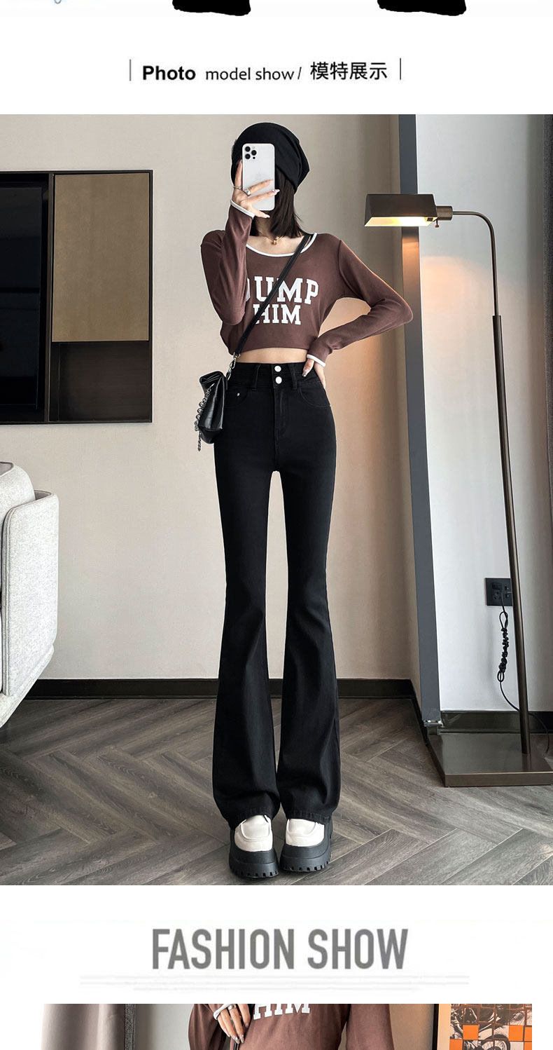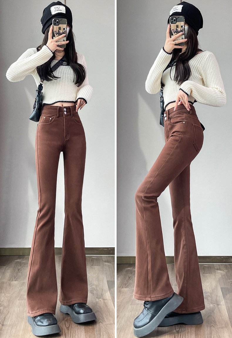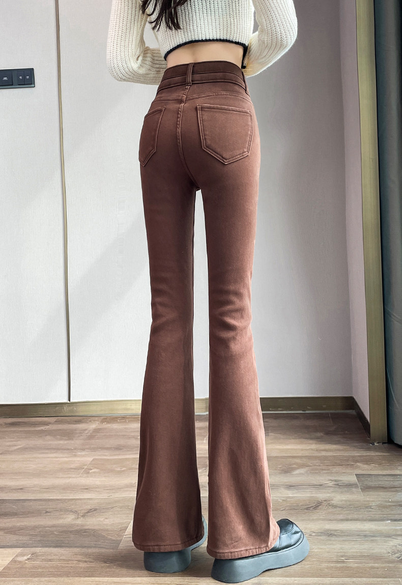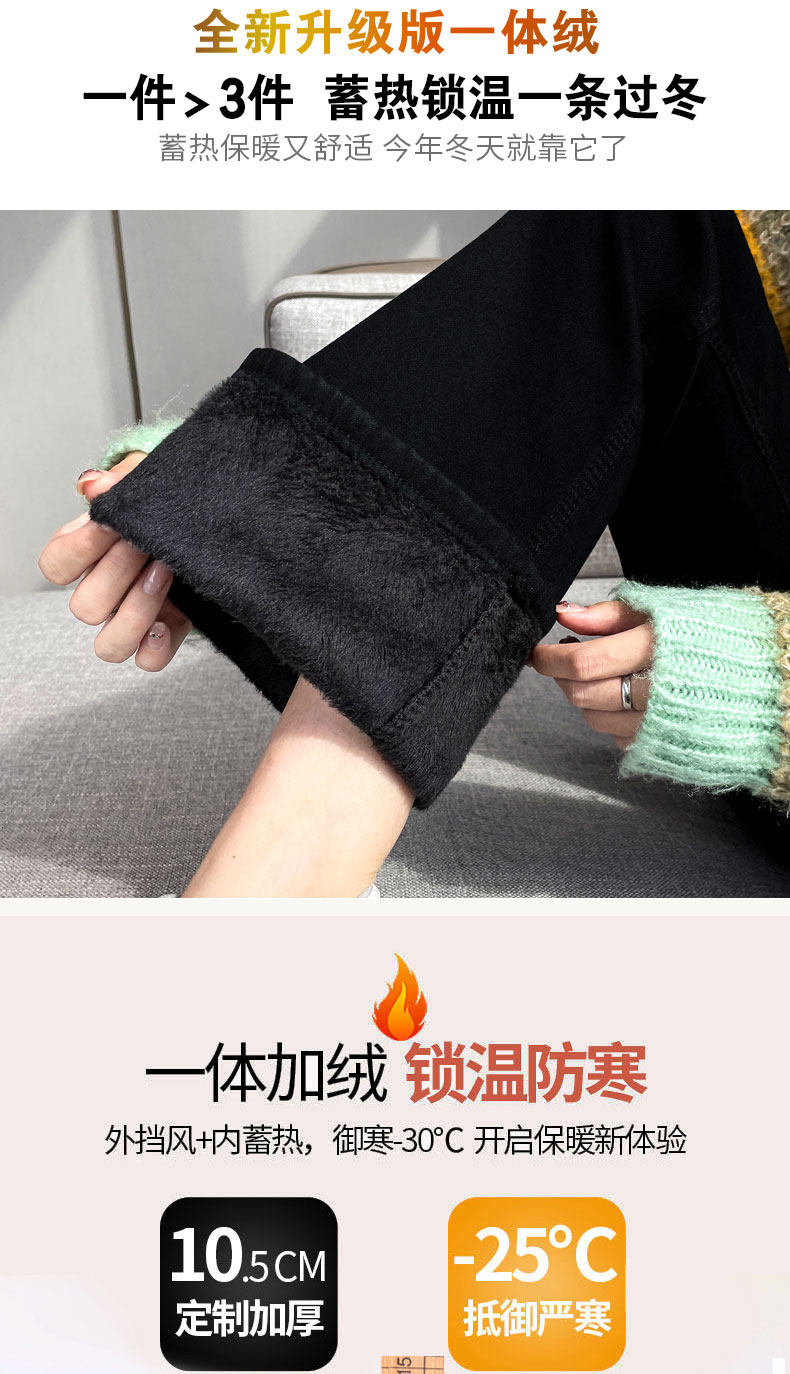 Джинсы, зимние штаны, черный цветной флисовый мегафон, 2025 года, новая коллекция, облегающий крой, высокая талия