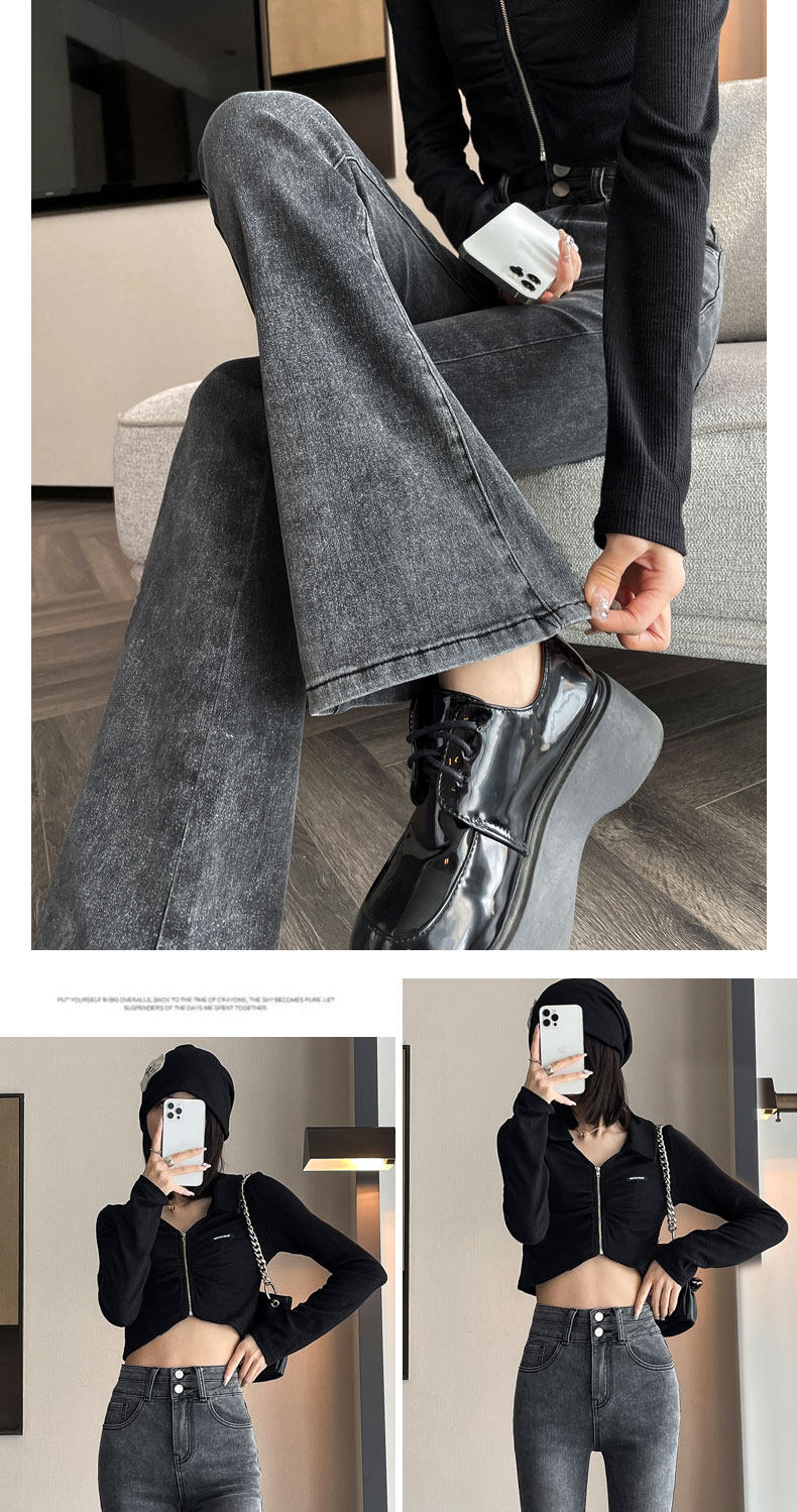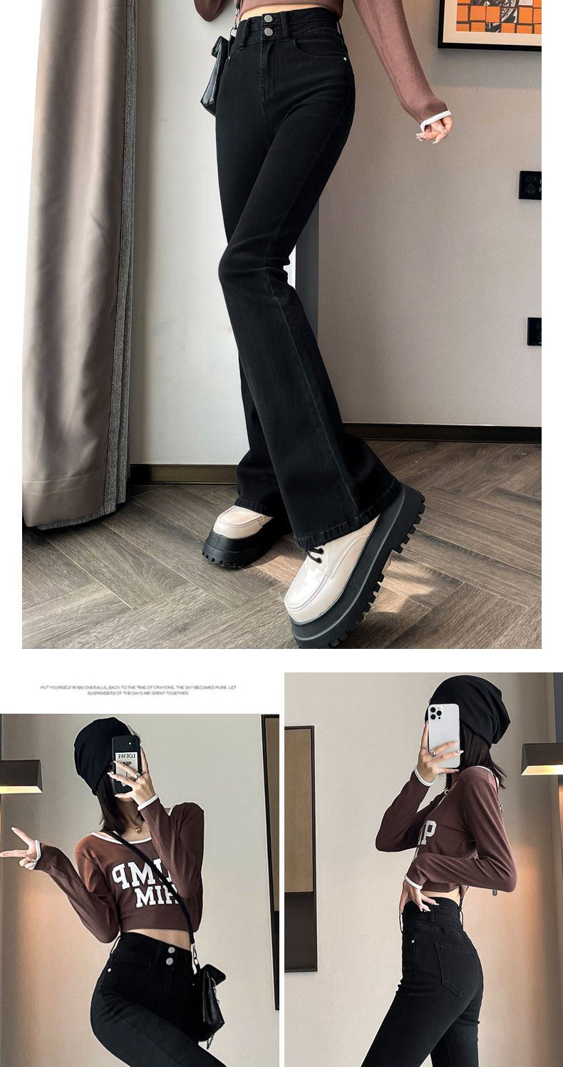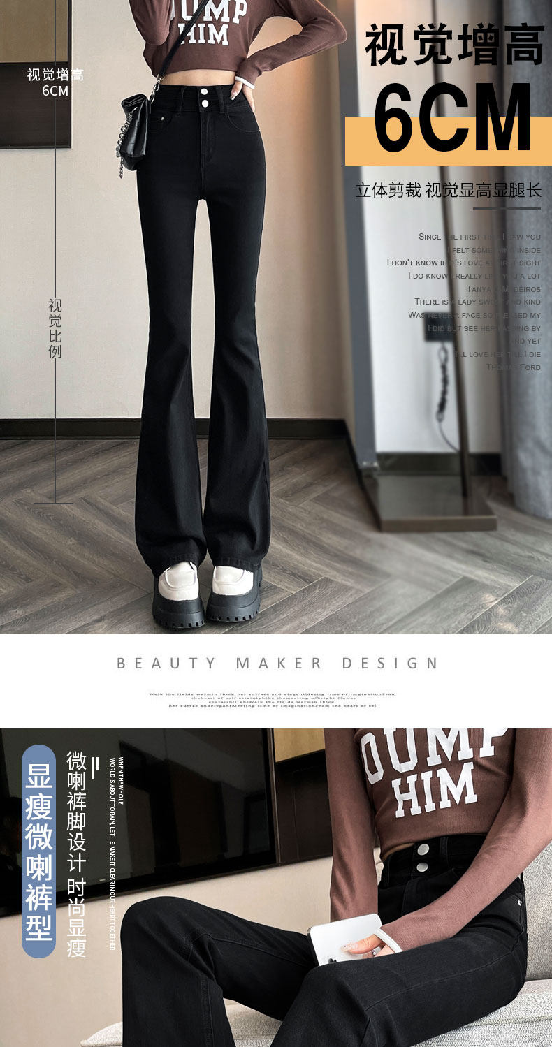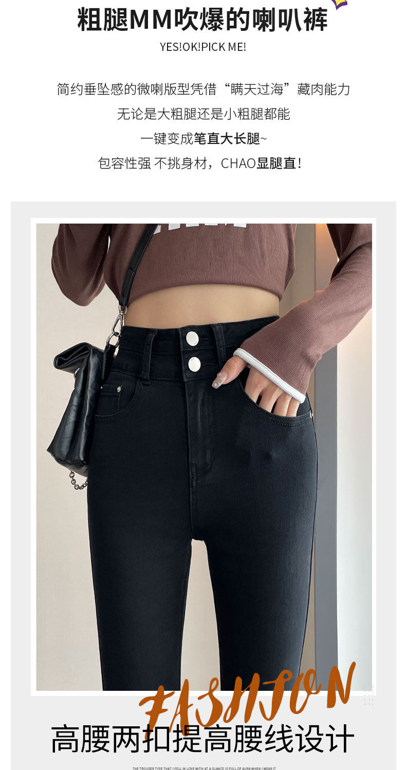 Джинсы, зимние штаны, черный цветной флисовый мегафон, 2025 года, новая коллекция, облегающий крой, высокая талия
