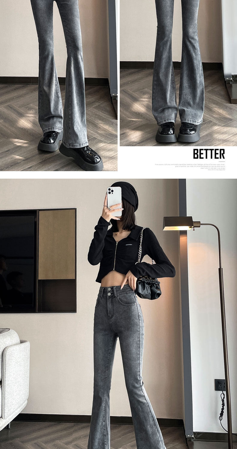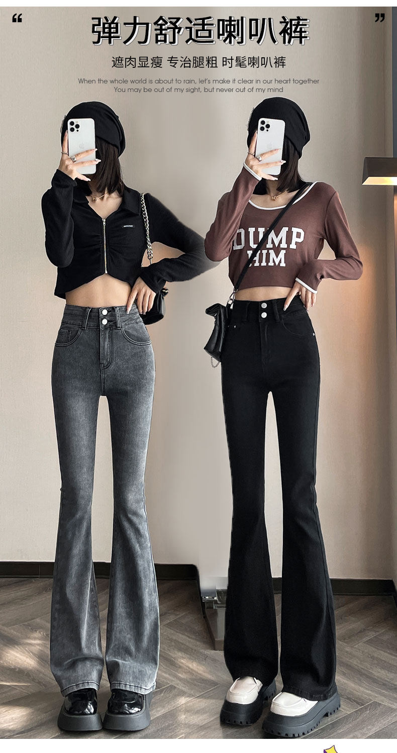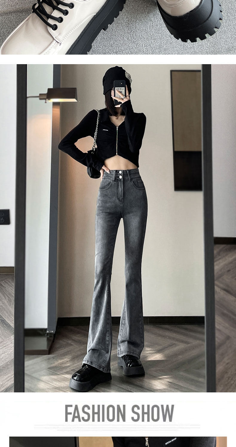 Джинсы, зимние штаны, черный цветной флисовый мегафон, 2025 года, новая коллекция, облегающий крой, высокая талия