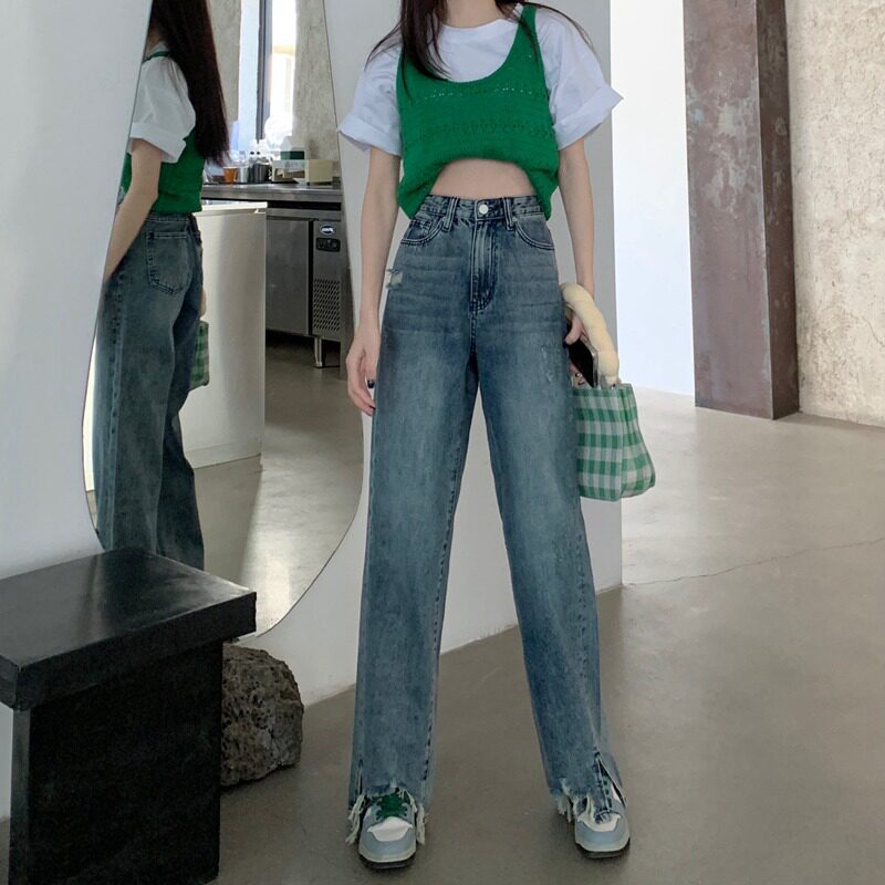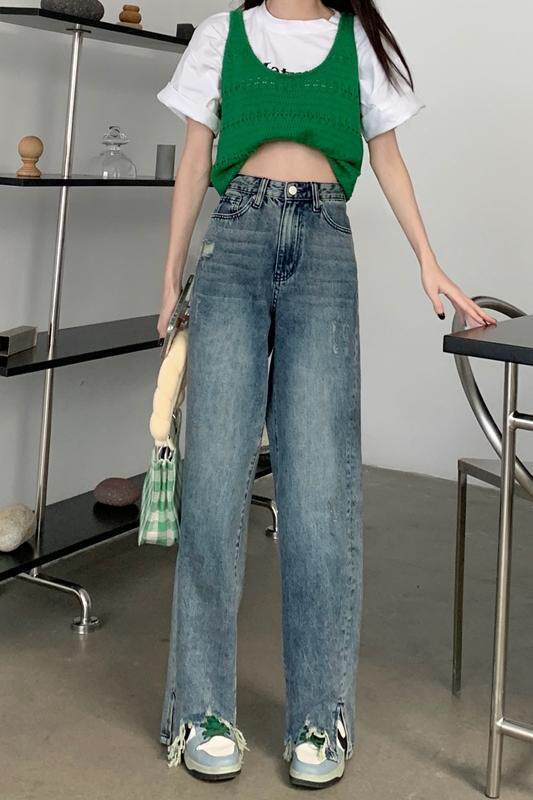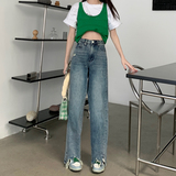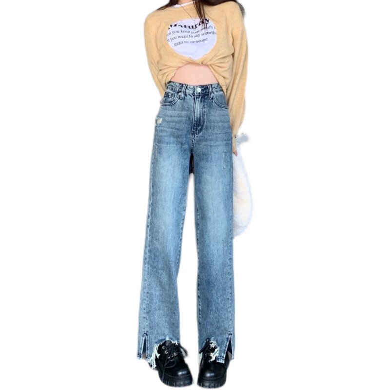 Прямые свободные джинсы, приталенные штаны, для формы тела «груша», подходят для подростков, большой размер, высокая талия