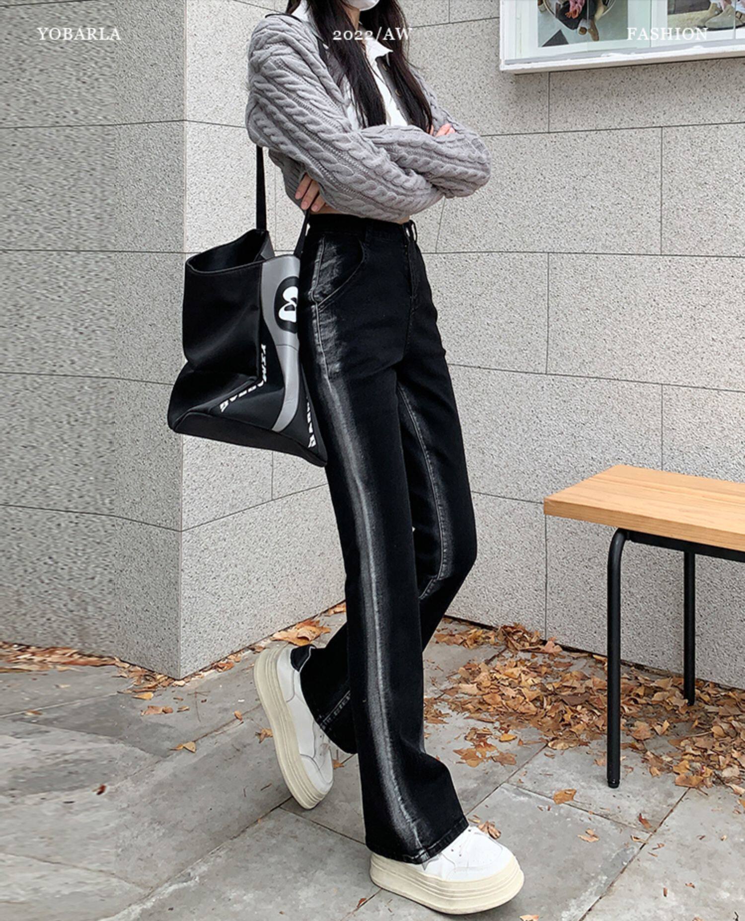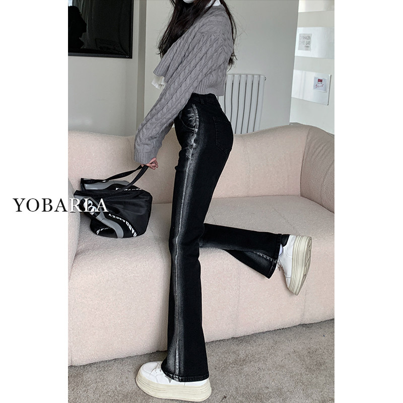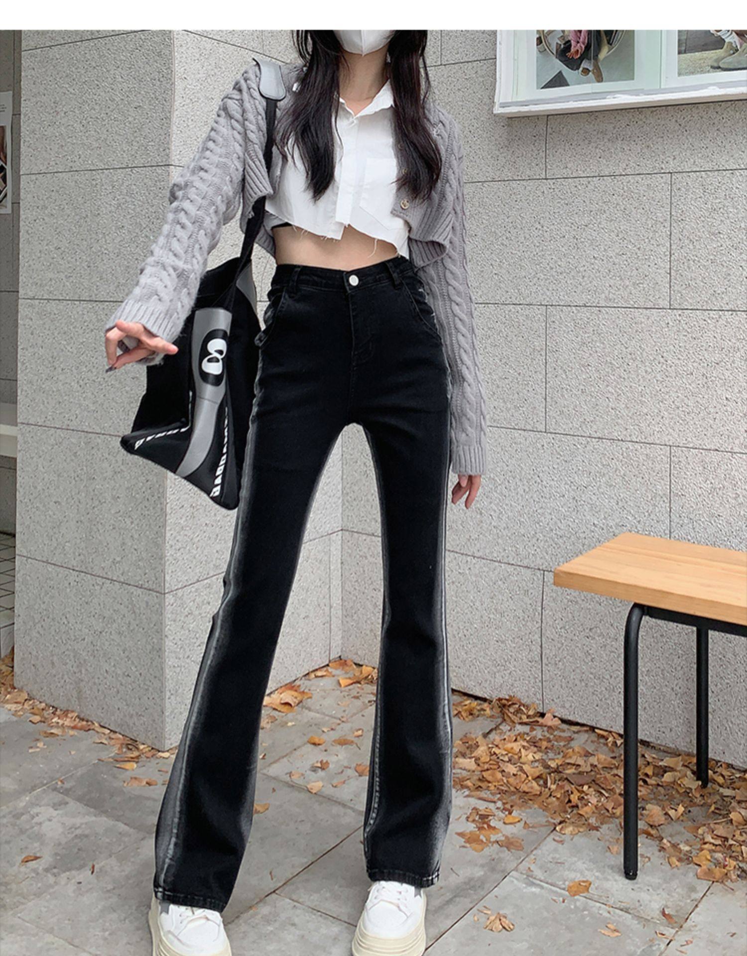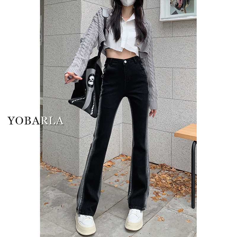 Черные весенние прямые свободные джинсы, эластичные штаны, тренд сезона, большой размер, высокая талия, по фигуре