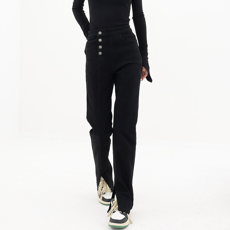 Черные осенние джинсы, штаны, приталенный ростомер, облегающий крой, в обтяжку