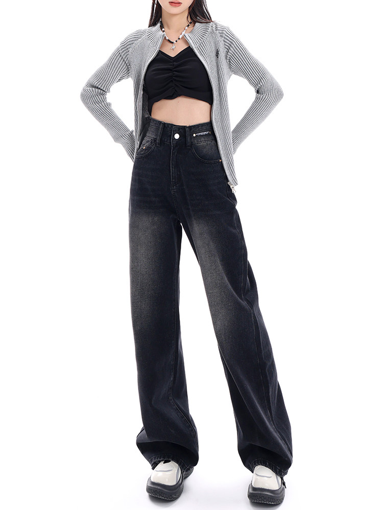 Летние джинсы, штаны, высокая талия, по фигуре, свободный прямой крой