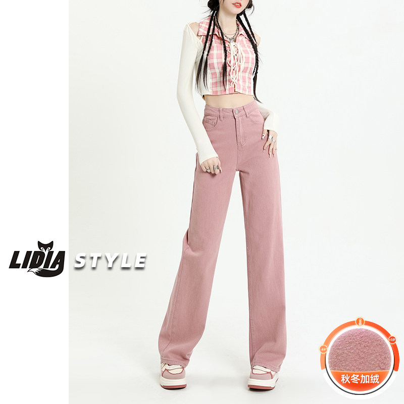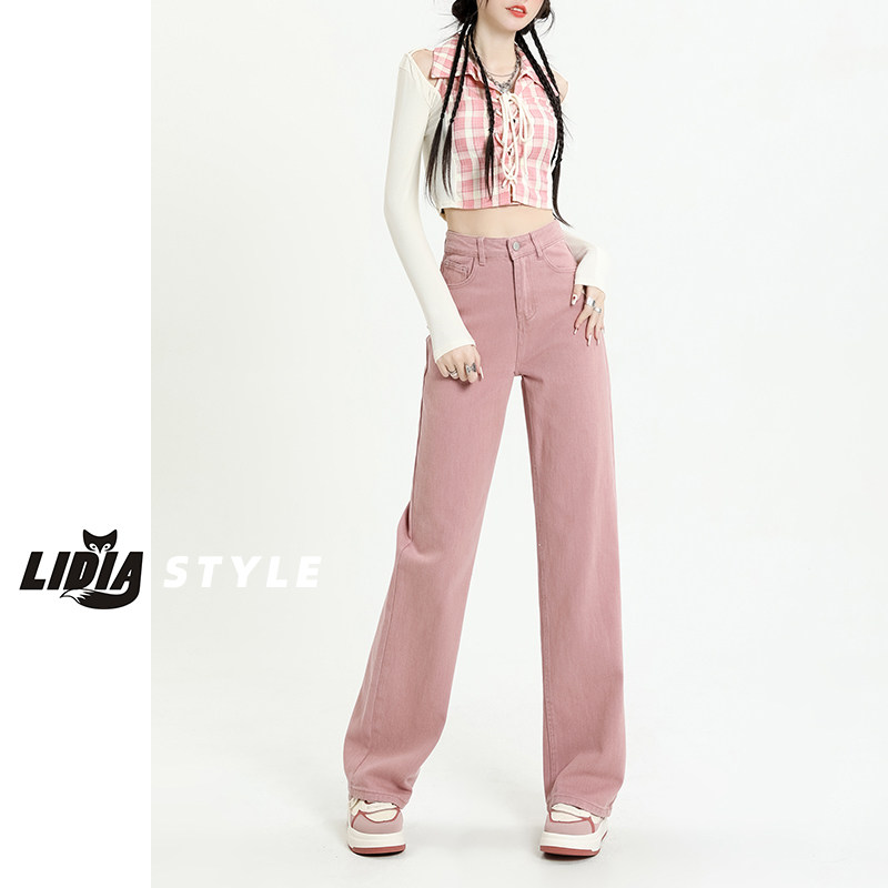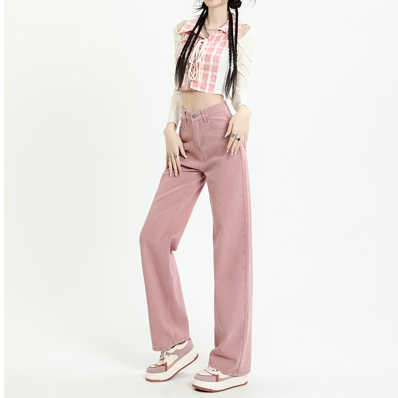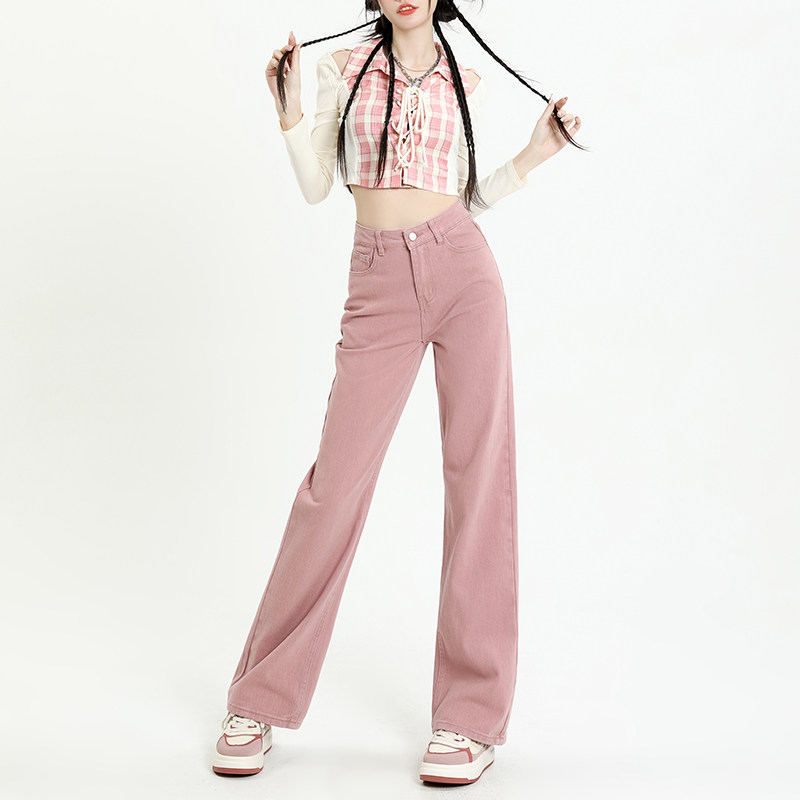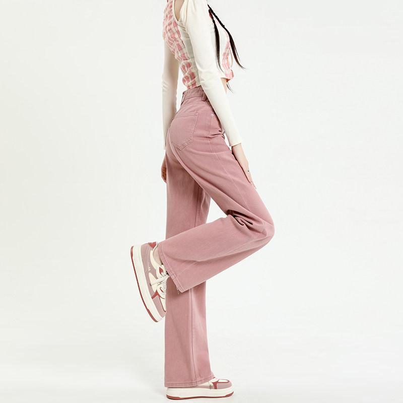 Розовые штаны, прямые свободные джинсы, приталенные леггинсы, осенние, коллекция 2023, высокая талия