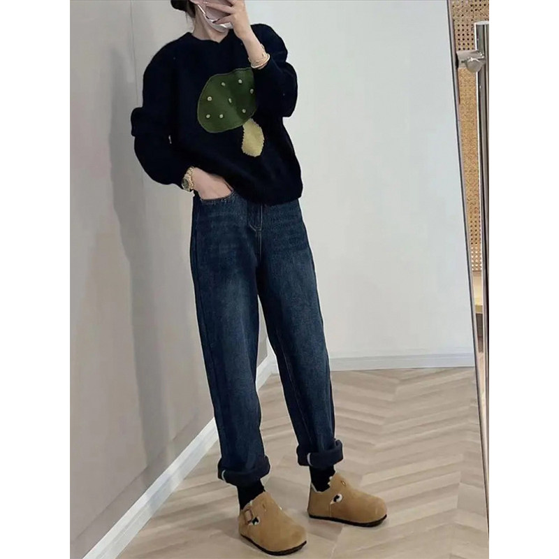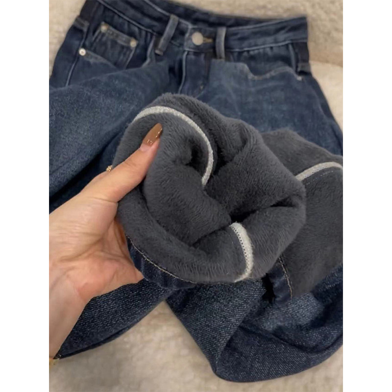 Утепленные штаны, зимние приталенные джинсы, большой размер, высокая талия, свободный прямой крой