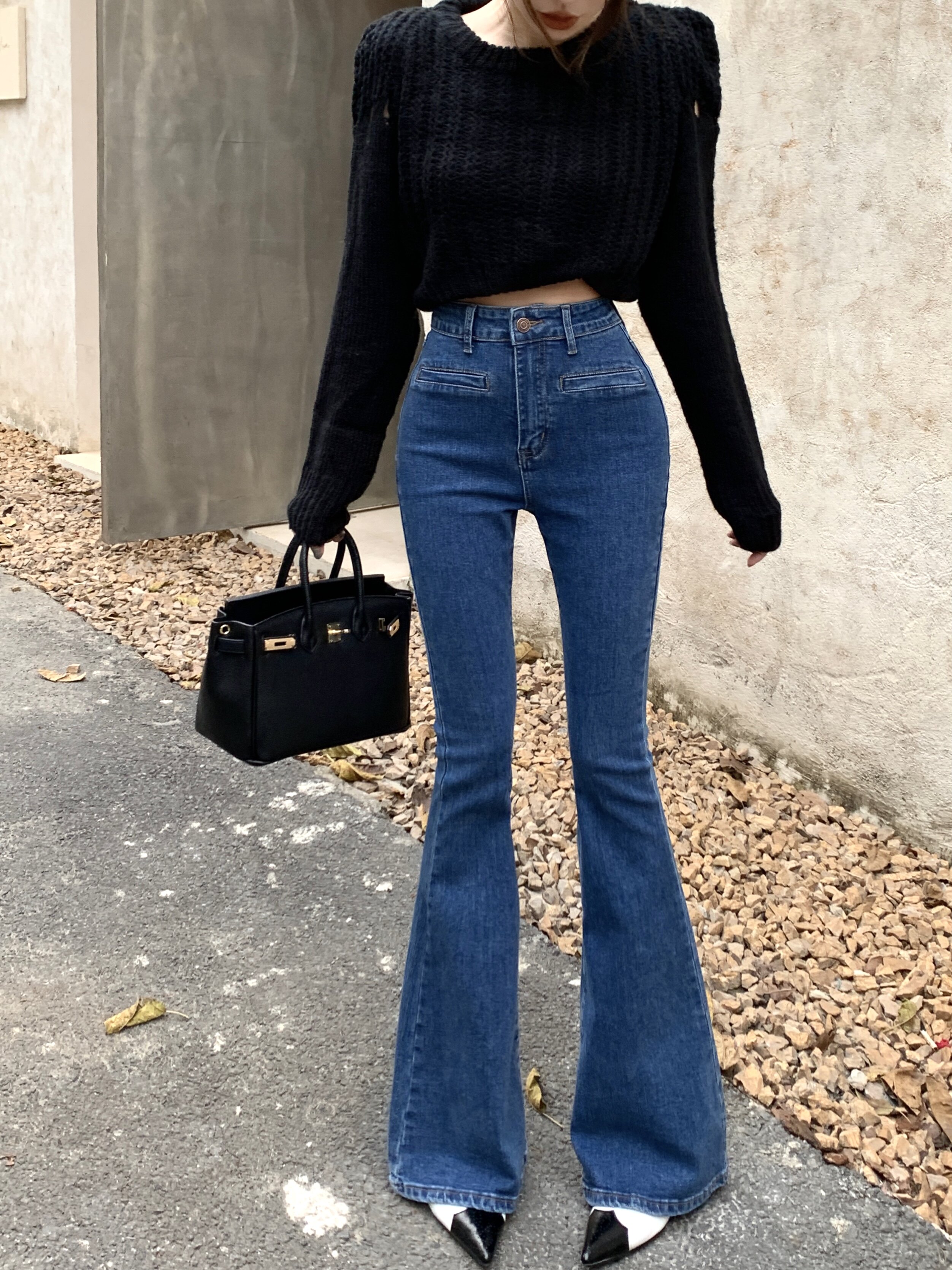 Дизайнерские зимние штаны, эластичные джинсы, тренд сезона, высокая талия, свободный прямой крой