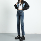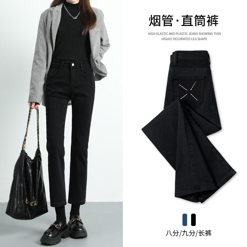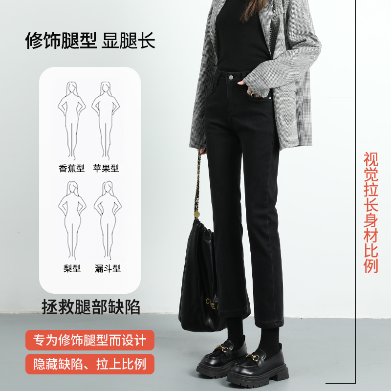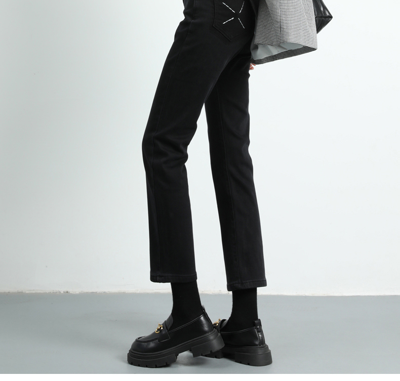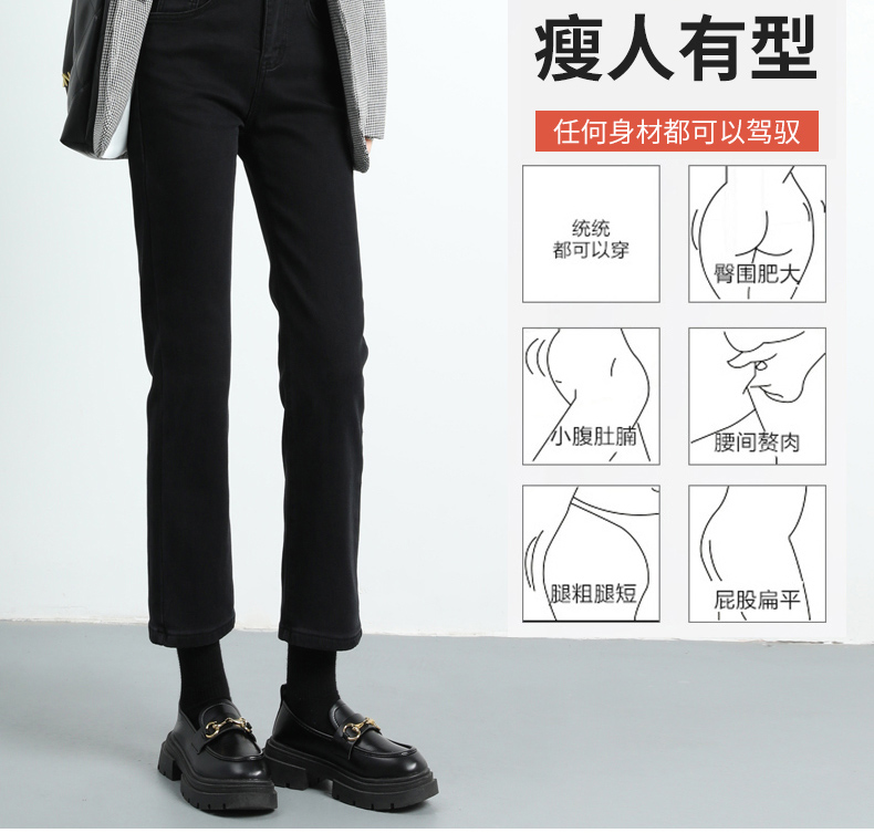 Черные флисовые демисезонные прямые свободные джинсы, штаны, зимние леггинсы, высокая талия, коллекция 2022, по фигуре, подходит для подростков