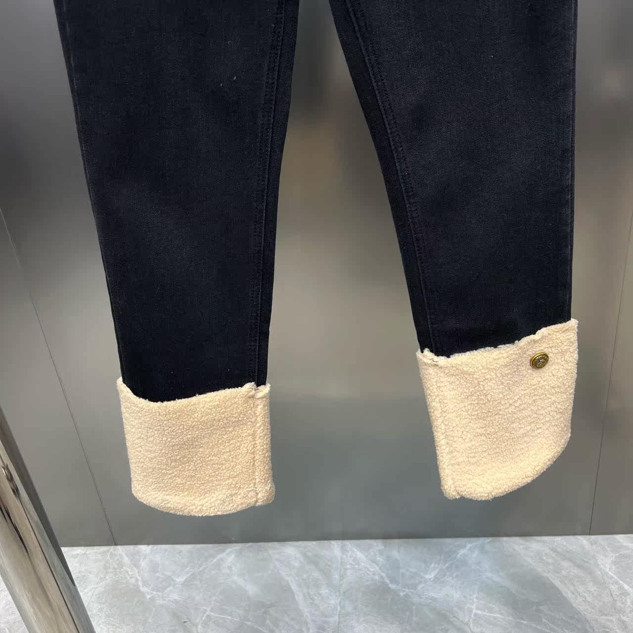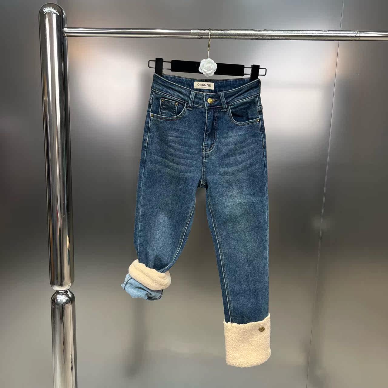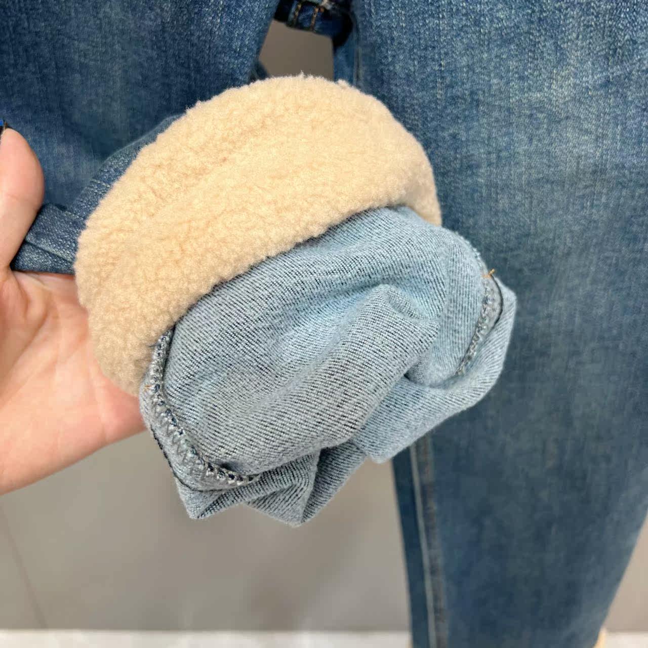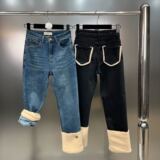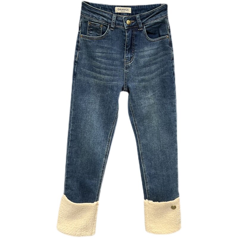 Демисезонные эластичные джинсовые бархатные штаны, популярно в интернете, по фигуре