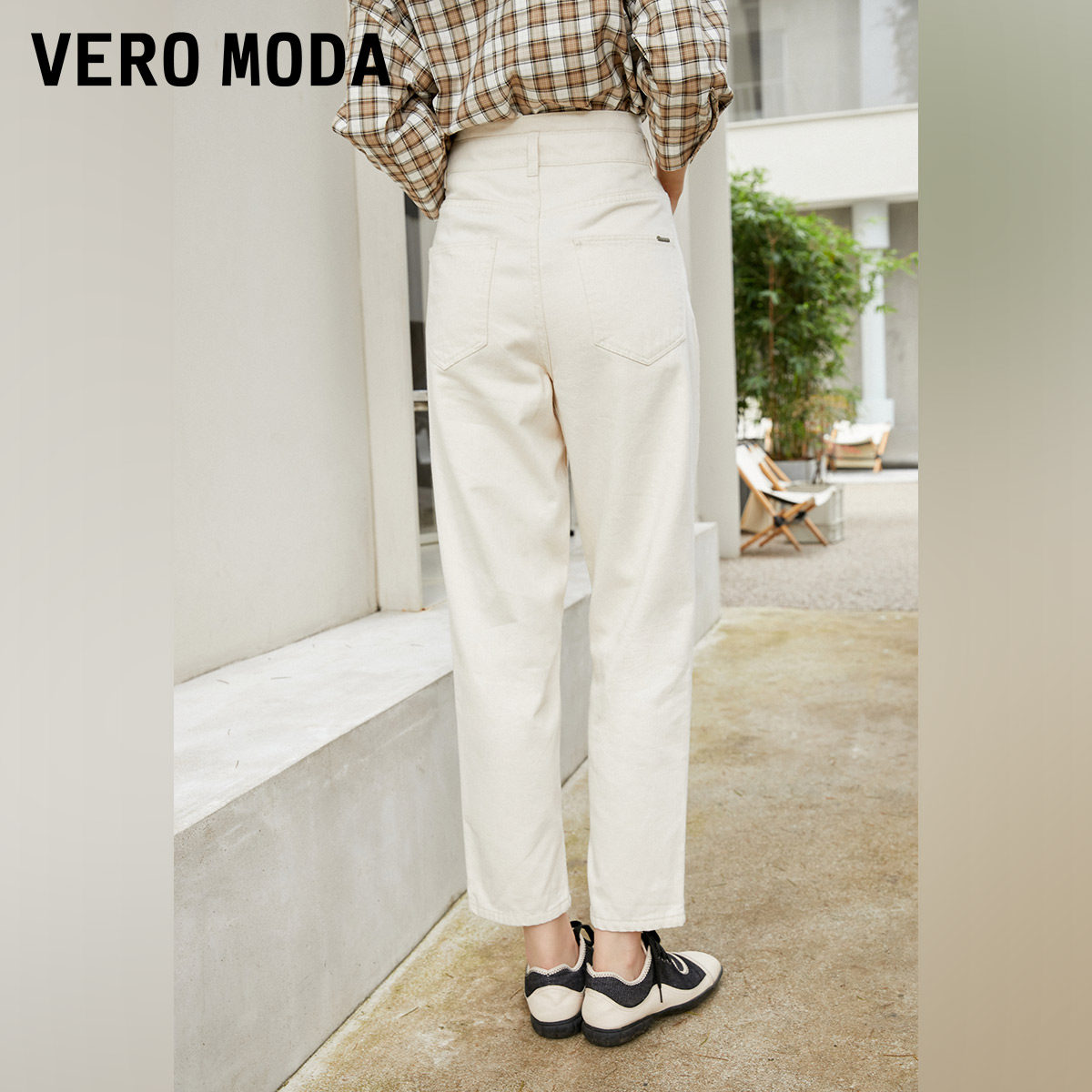 Vero Moda Хлопковые джинсы, белые штаны, коллекция 2023, высокая талия, свободный крой, для формы тела «груша»