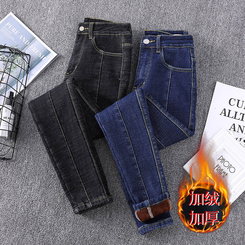 Флисовые джинсы с начесом, демисезонные штаны, карандаш, коллекция 2022, большой размер