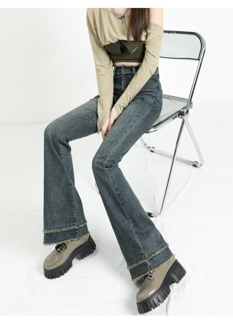 Штаны-клёш, джинсы, осенние штаны, леггинсы с кисточками, высокая талия, коллекция 2023