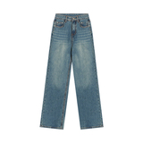 Синие ретро весенние джинсы, штаны, высокая талия, свободный прямой крой