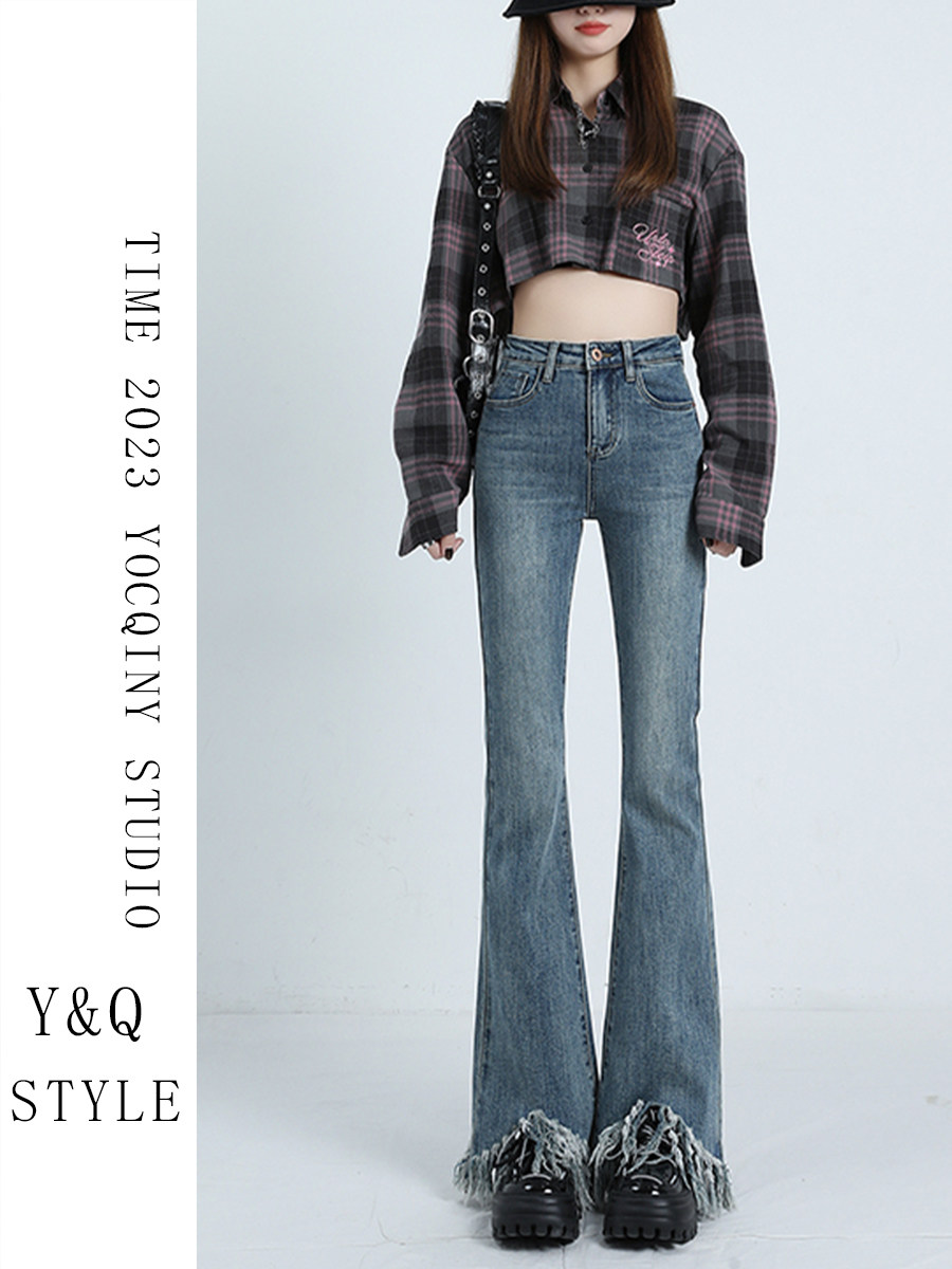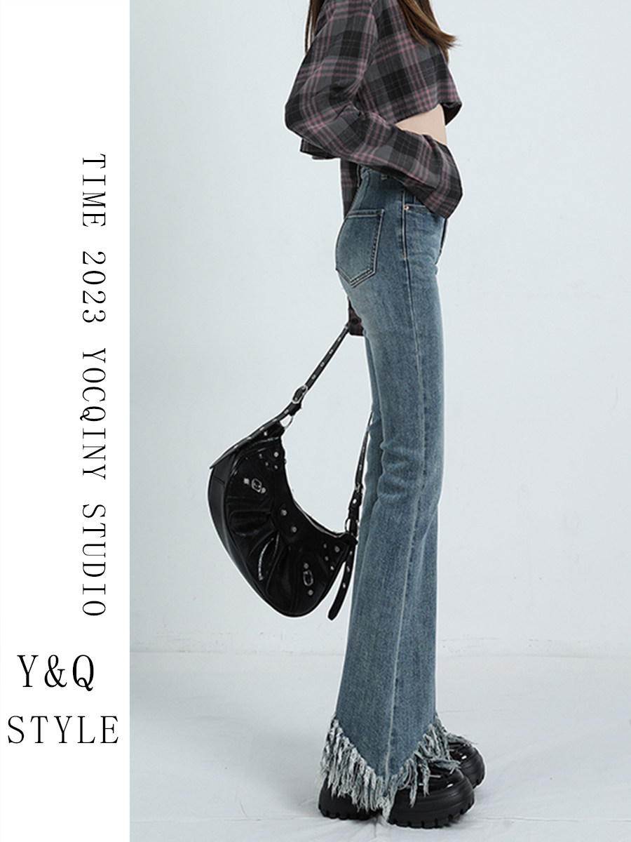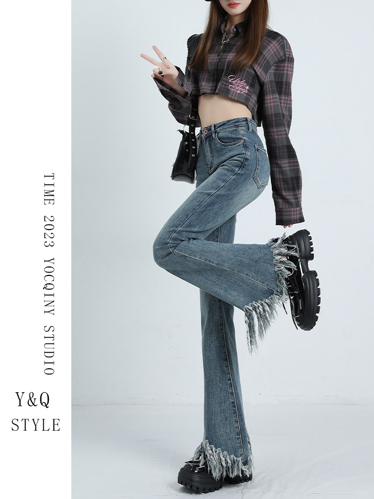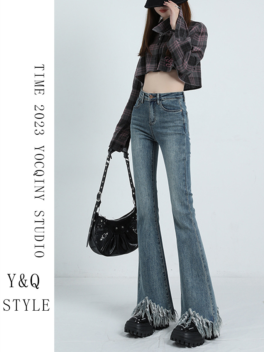 Ретро мегафон с кисточками, весенние джинсы, сексуальные штаны, высокая талия, тренд сезона, по фигуре