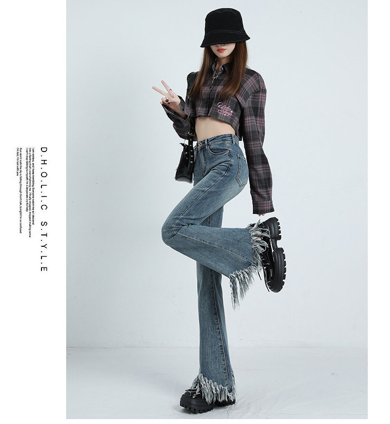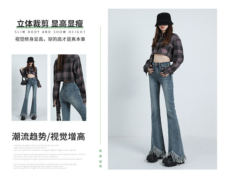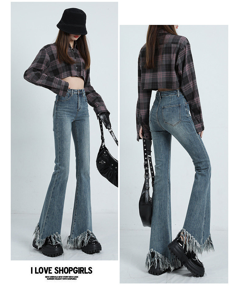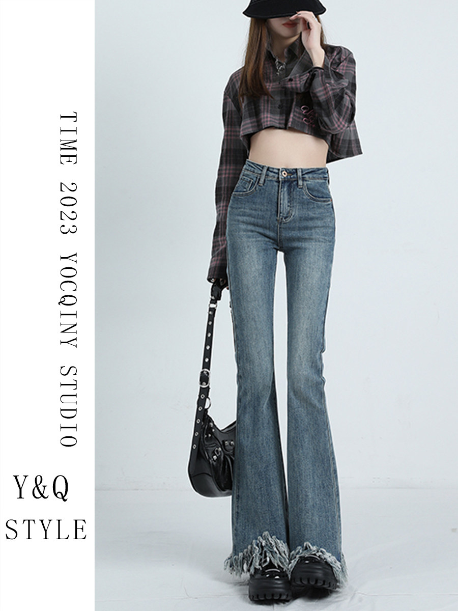 Ретро мегафон с кисточками, весенние джинсы, сексуальные штаны, высокая талия, тренд сезона, по фигуре