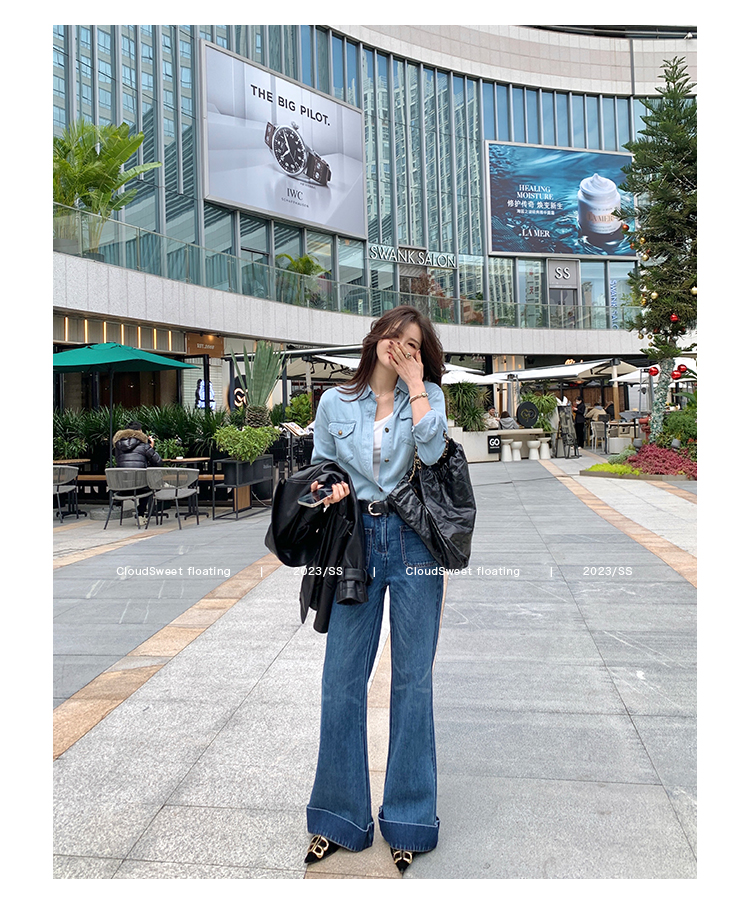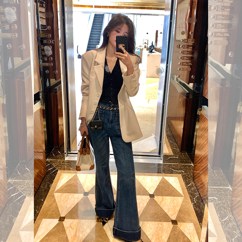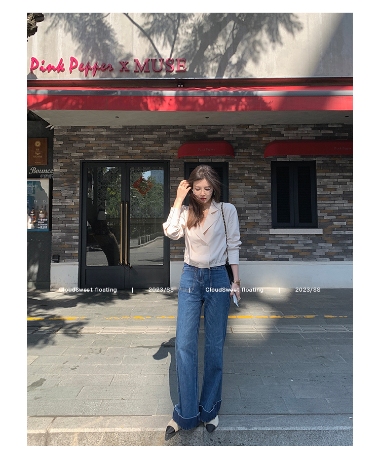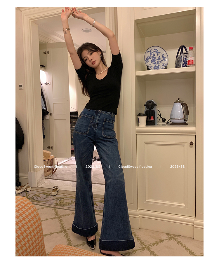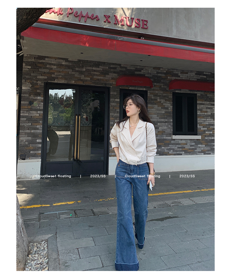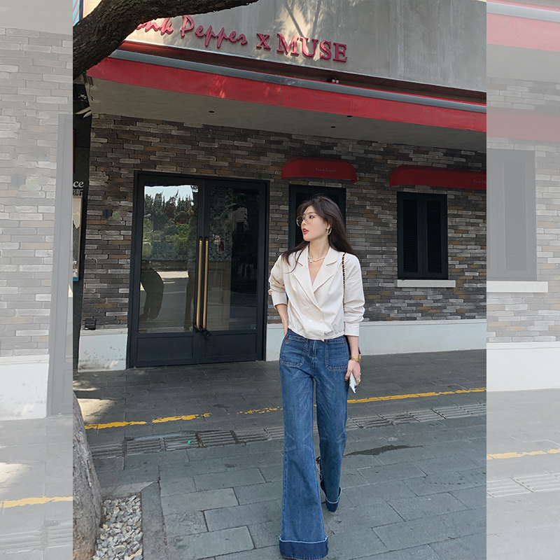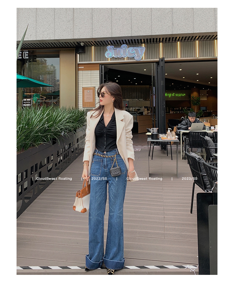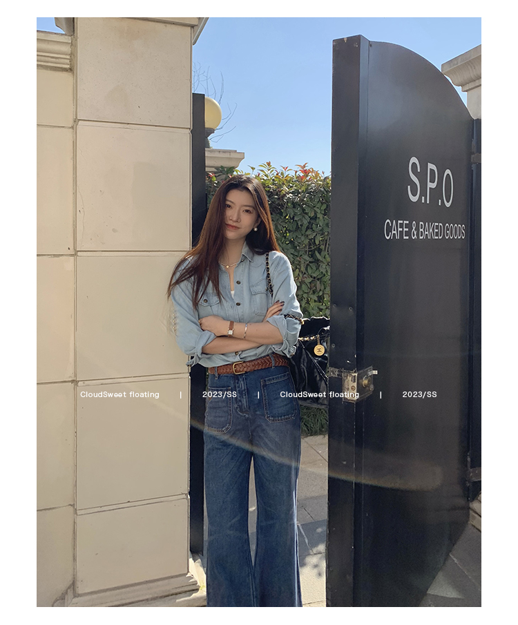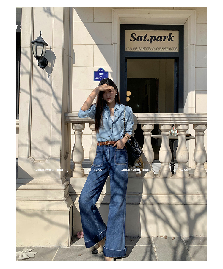 Классическая ретро -вода для мытья водой синее+Тип брюк с шириной waitou -