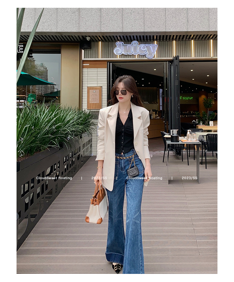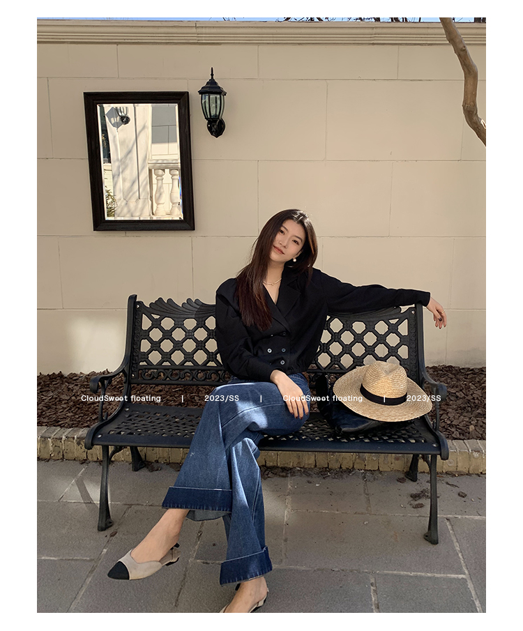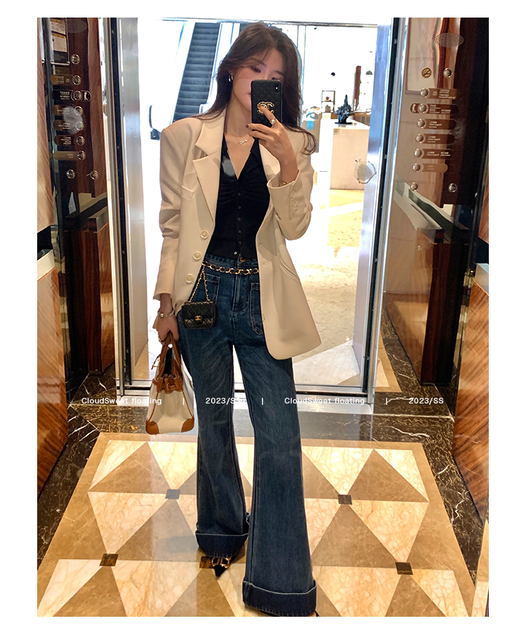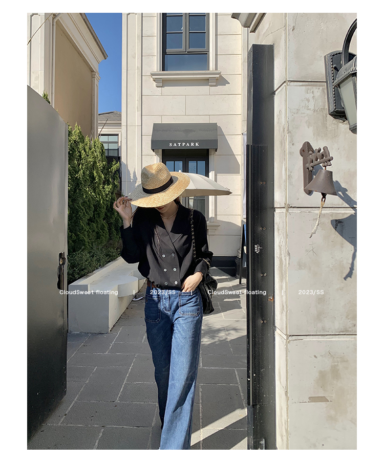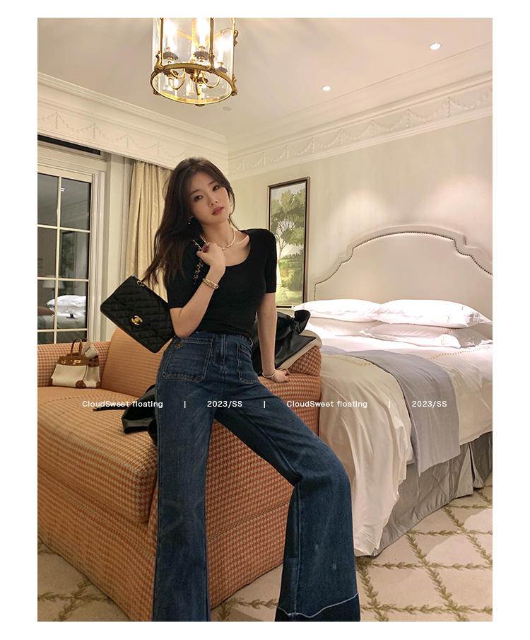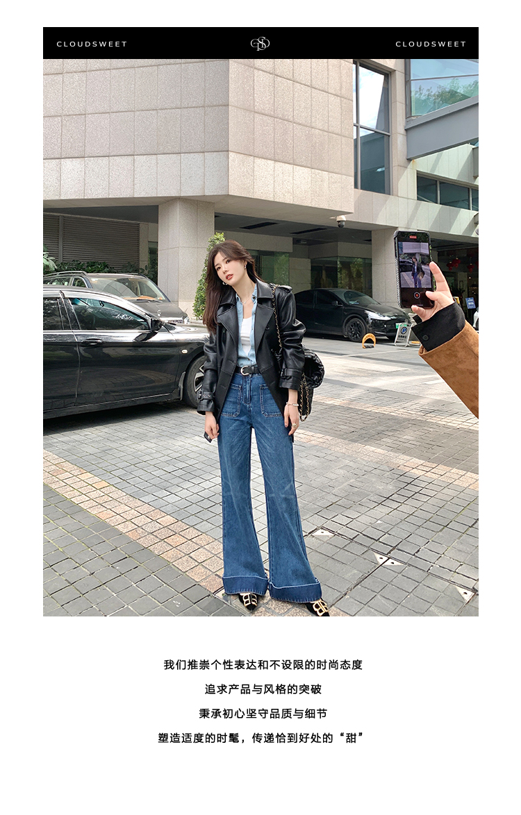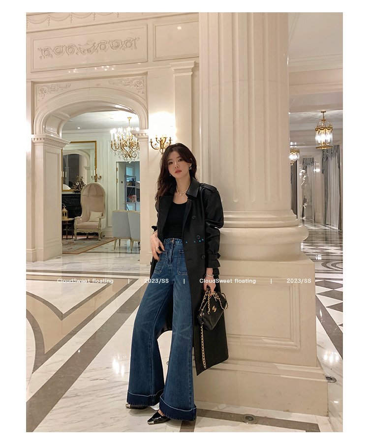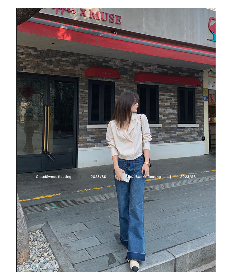 Классическая ретро -вода для мытья водой синее+Тип брюк с шириной waitou -