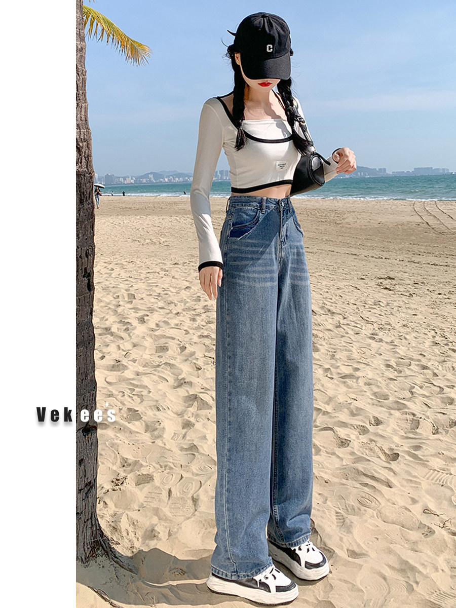 Прямые свободные джинсы, весенние приталенные штаны, коллекция 2023, оверсайз, высокая талия