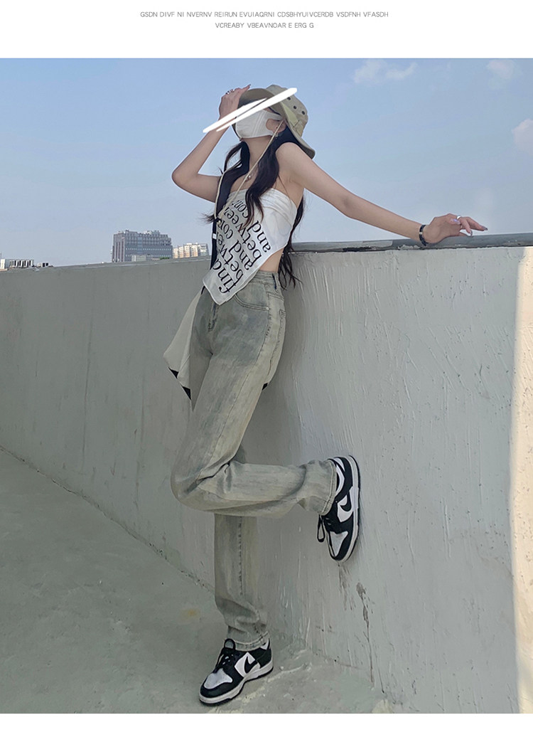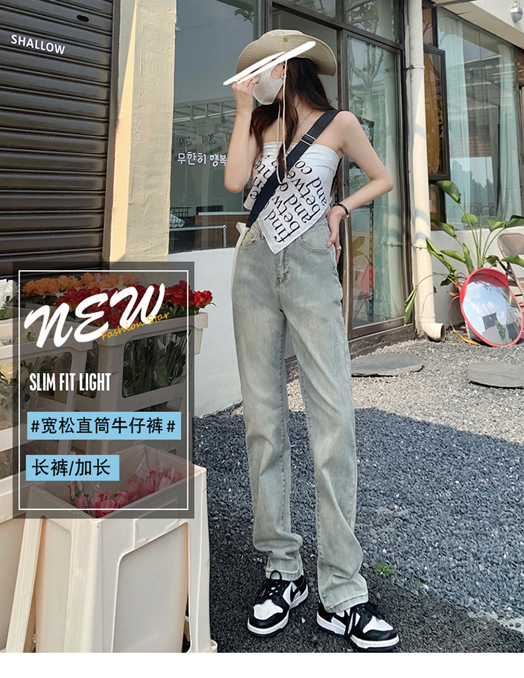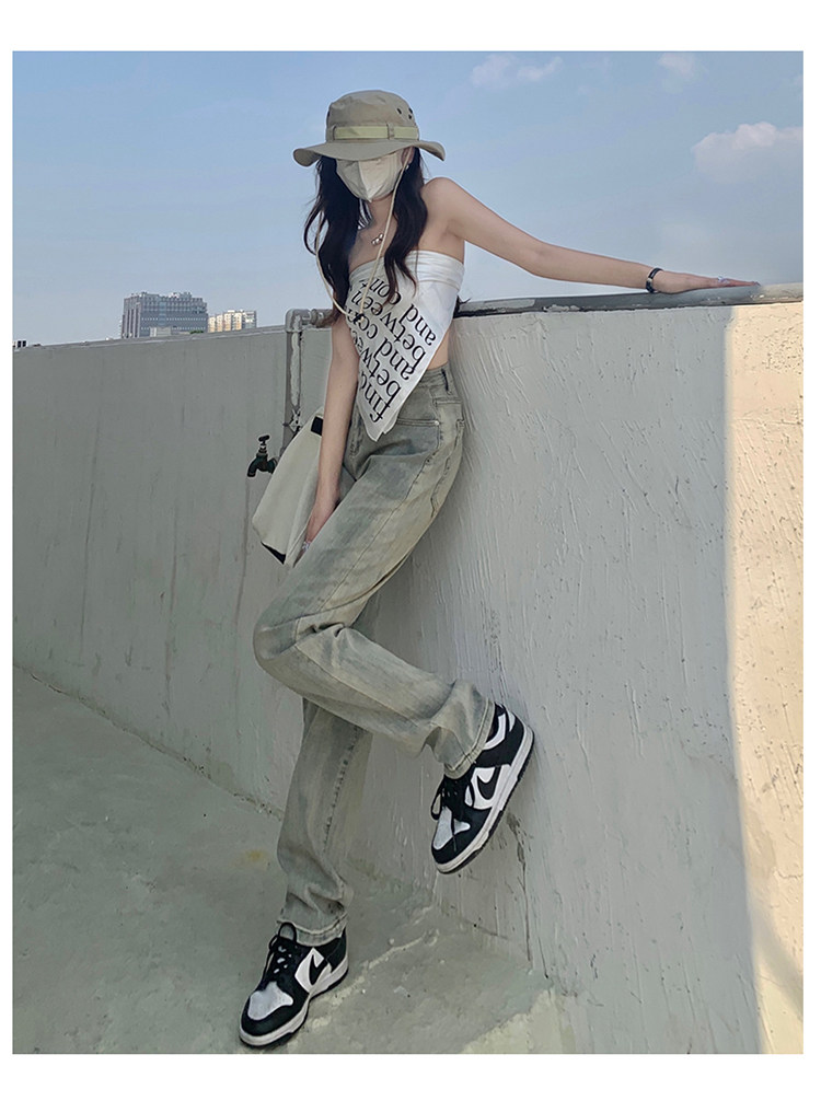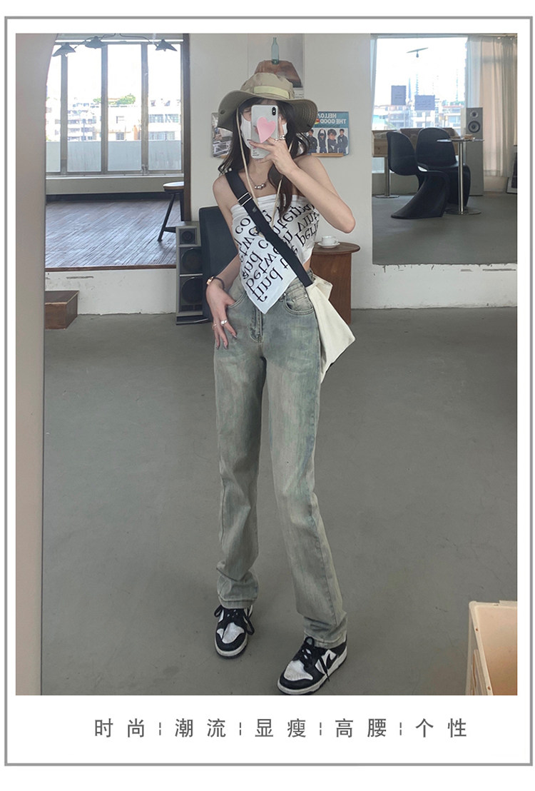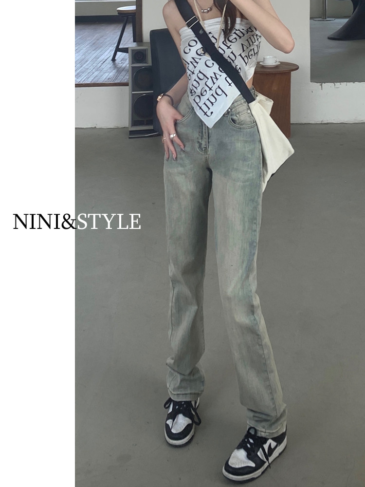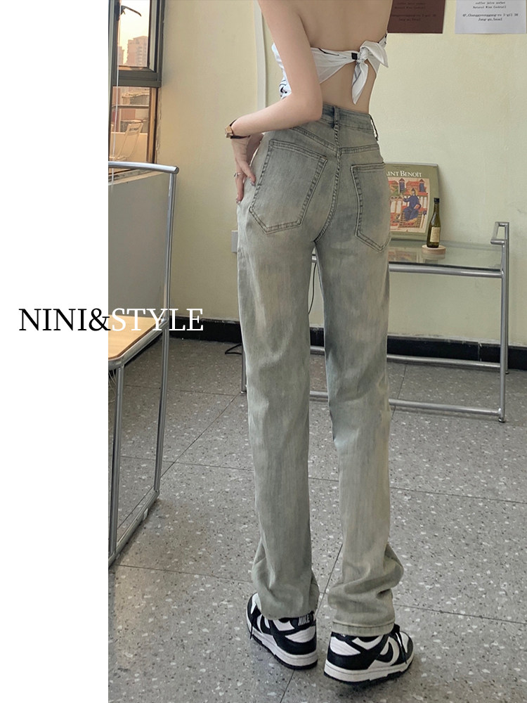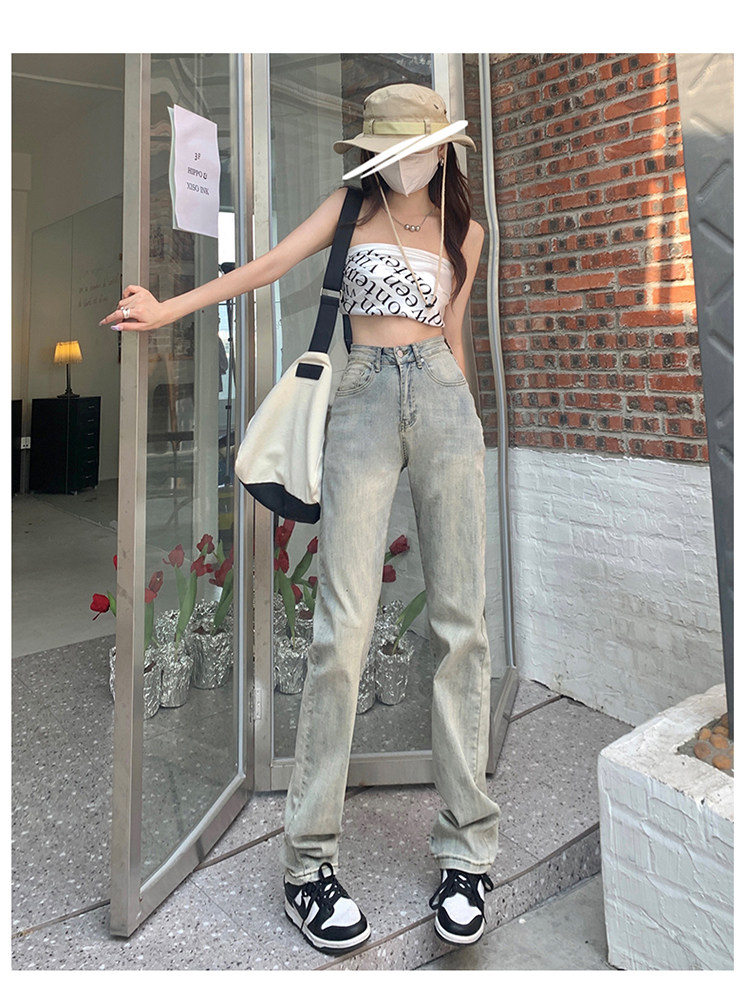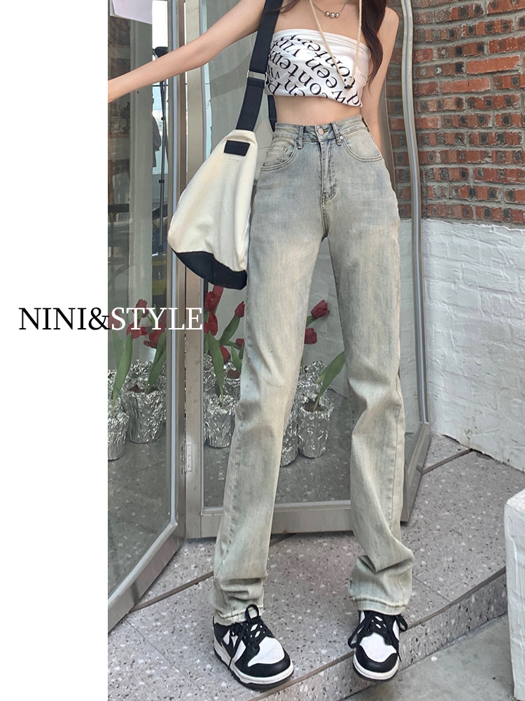 Светлые прямые свободные джинсы, весенние осенние ретро штаны, 2024 года, в американском стиле, высокая талия