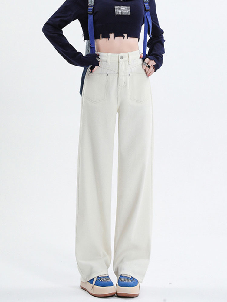 Белые джинсы, приталенные весенние штаны, высокая талия, свободный прямой крой, подходит для подростков