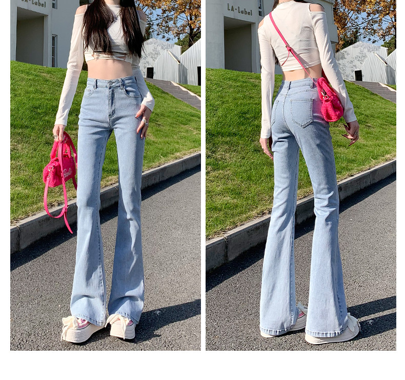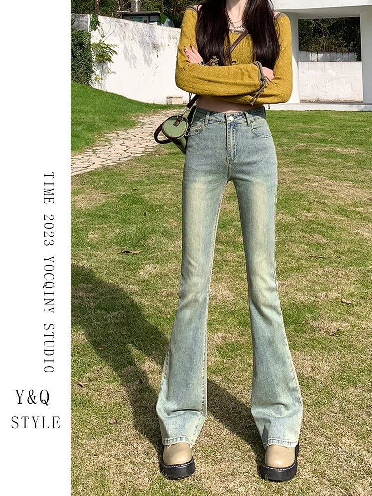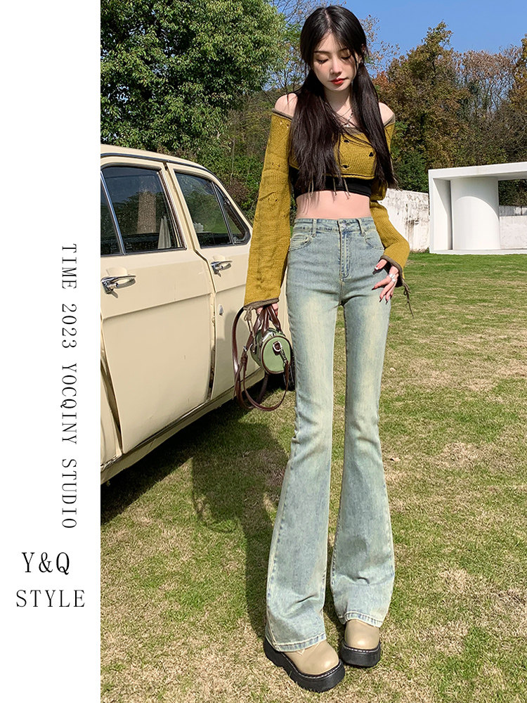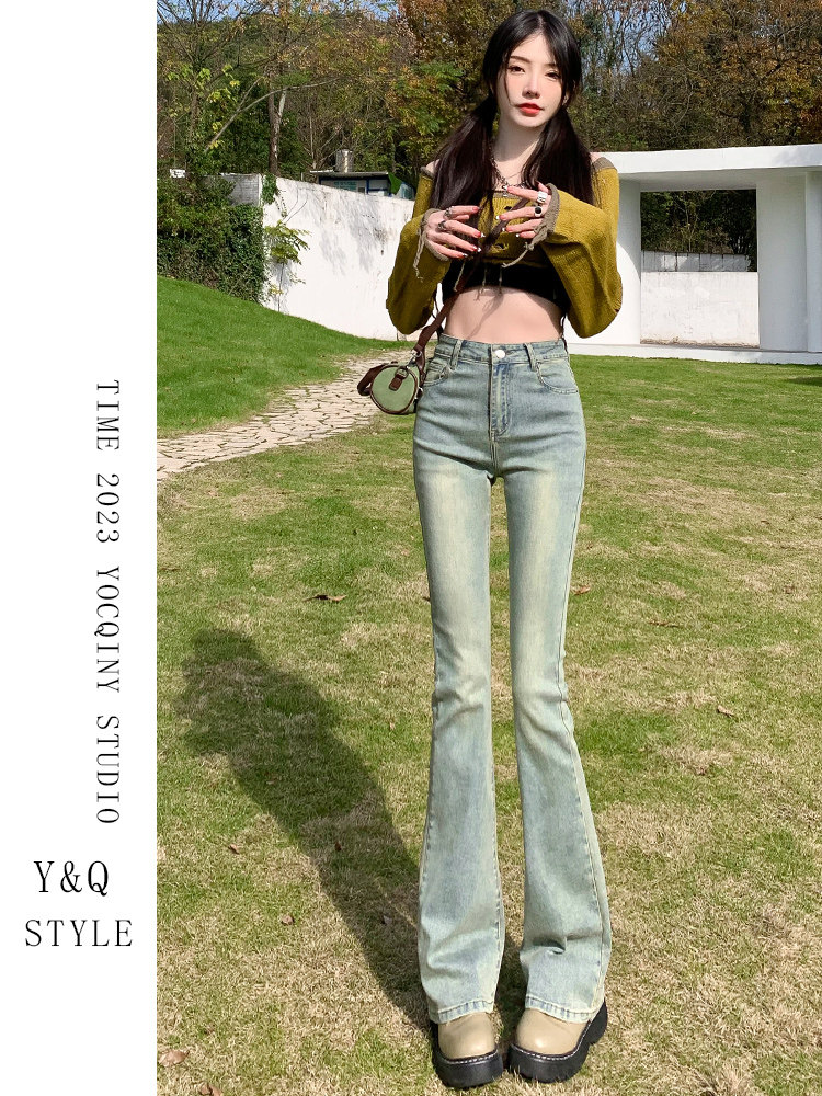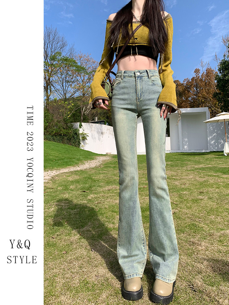 Весенний мегафон, джинсы, эластичные штаны, высокая талия, свободный прямой крой, по фигуре