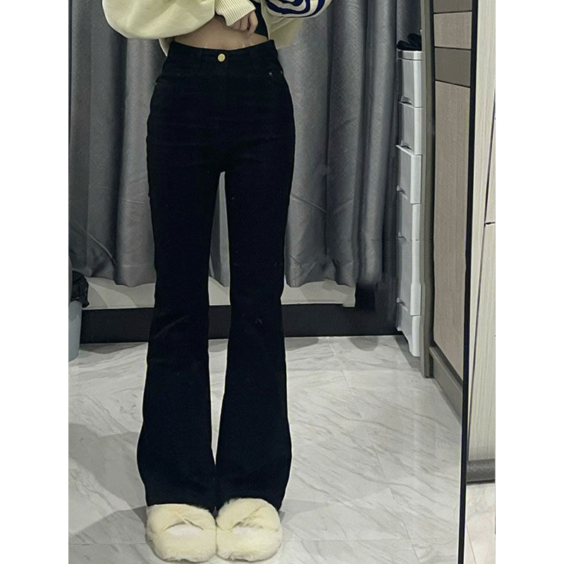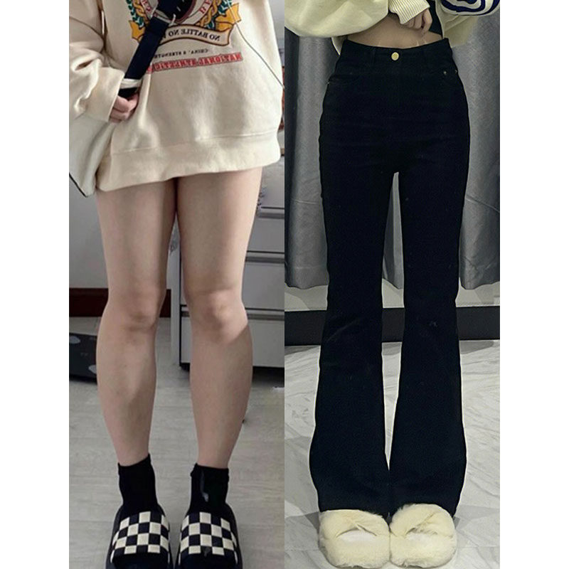 Черные весенние джинсы, штаны, приталенные эластичные штаны-клёш, тренд сезона, для формы тела «груша», большой размер, высокая талия