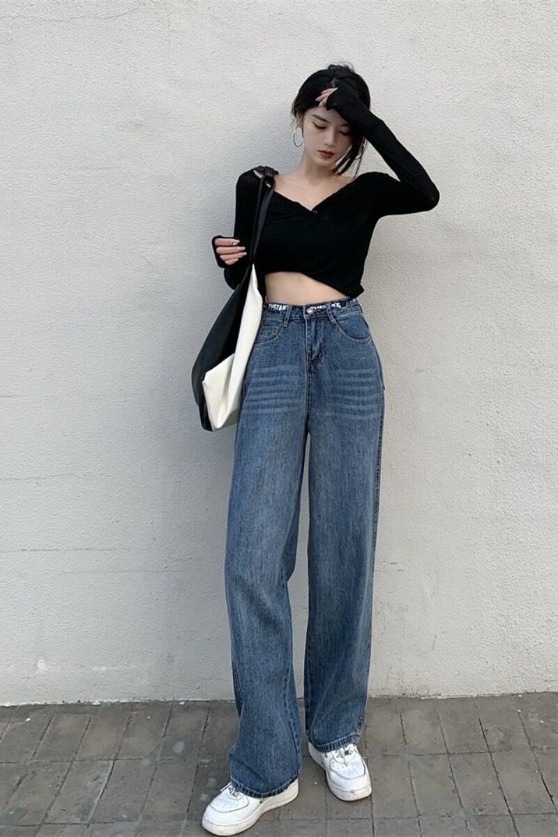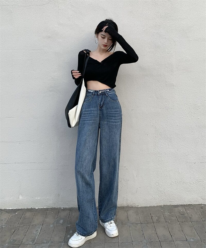 Весенние дизайнерские джинсы, штаны, 2023 года, тренд сезона, высокая талия, свободный прямой крой