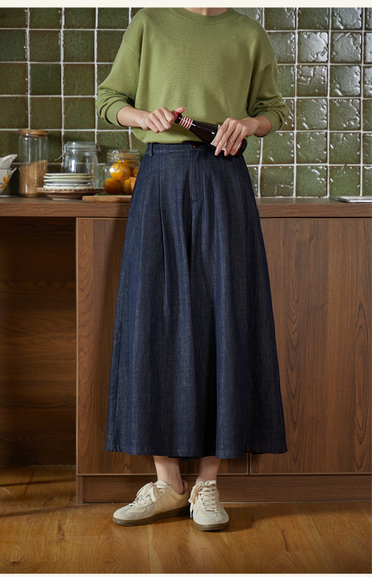 Оригинальные ретро джинсы, хлопковая юбка, штаны для отдыха, свободный крой, высокая талия