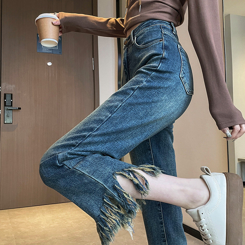 Ретро весенние джинсы, дизайнерские штаны, коллекция 2023, высокая талия, тренд сезона, свободный прямой крой