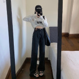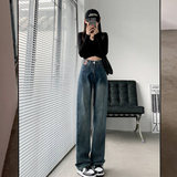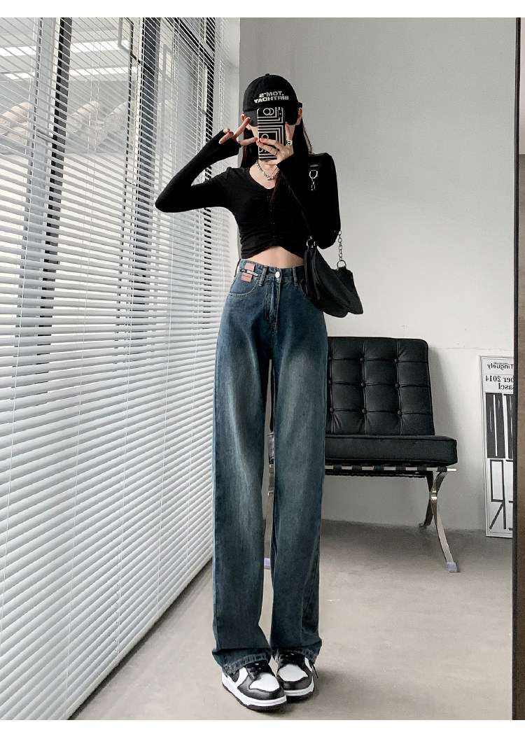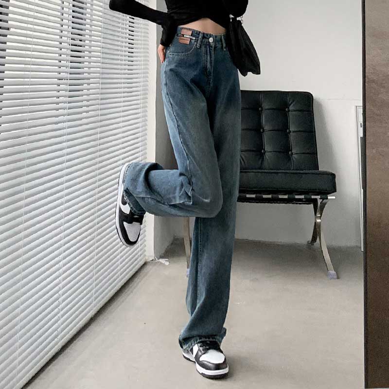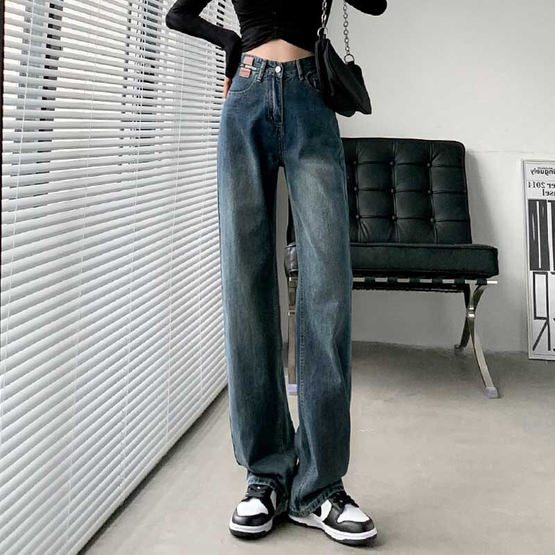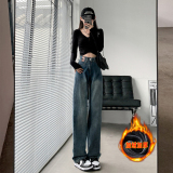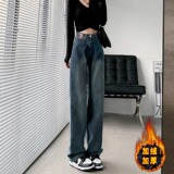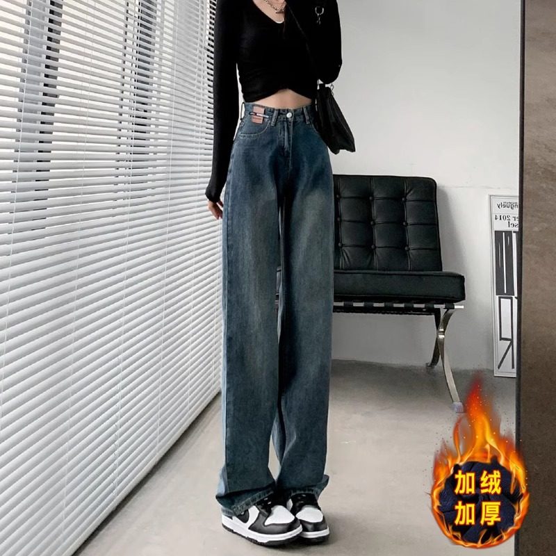 Ретро джинсы, утепленные демисезонные штаны, высокая талия, свободный прямой крой