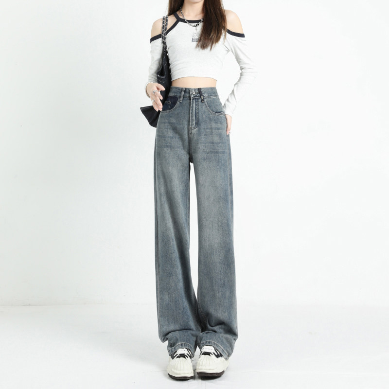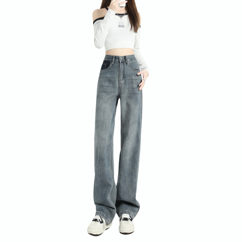 Сексуальные джинсы, приталенные весенние штаны, свободный прямой крой, высокая талия, коллекция 2023