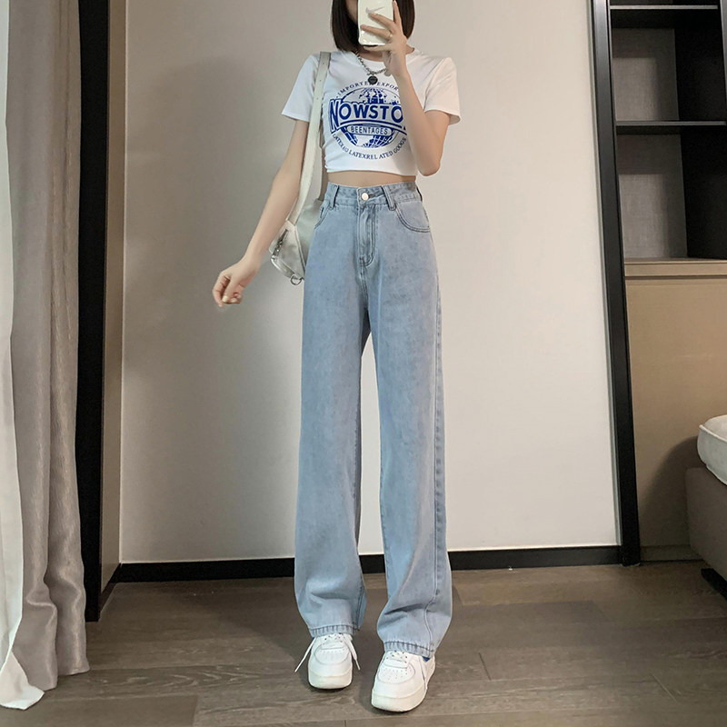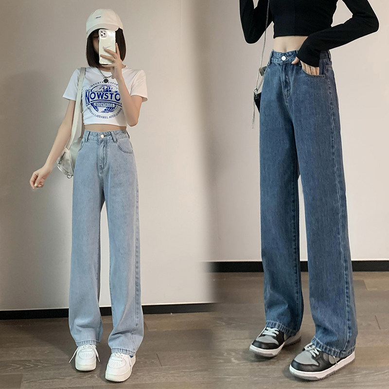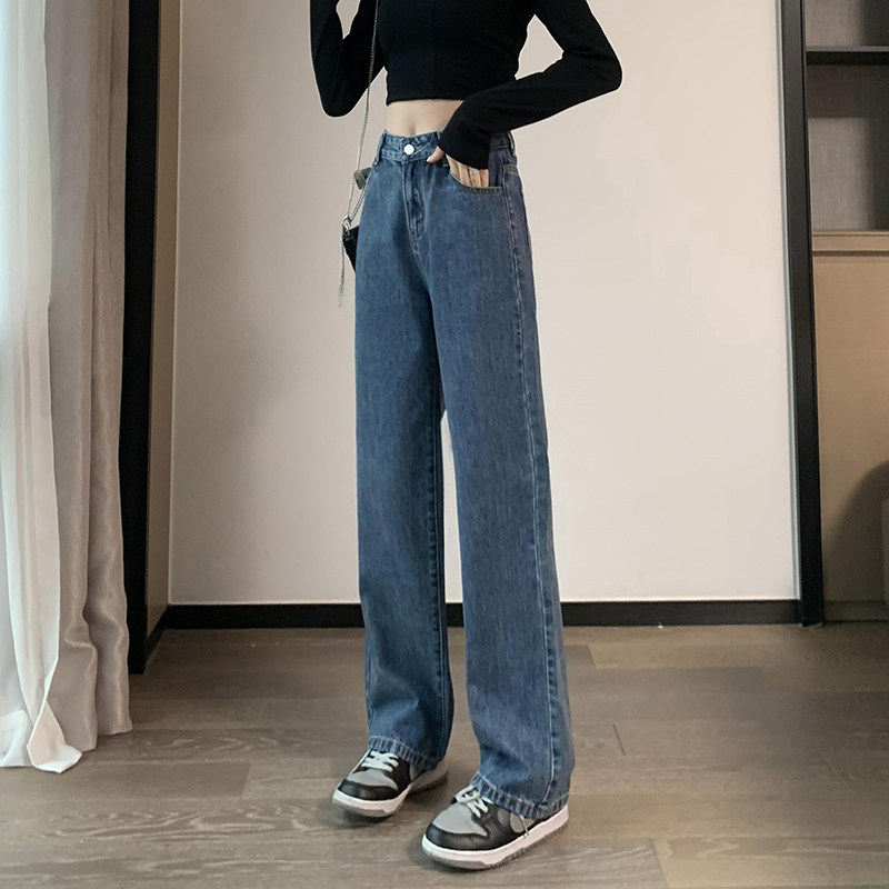 Осенние джинсы, штаны, подходит для подростков, высокая талия, свободный прямой крой