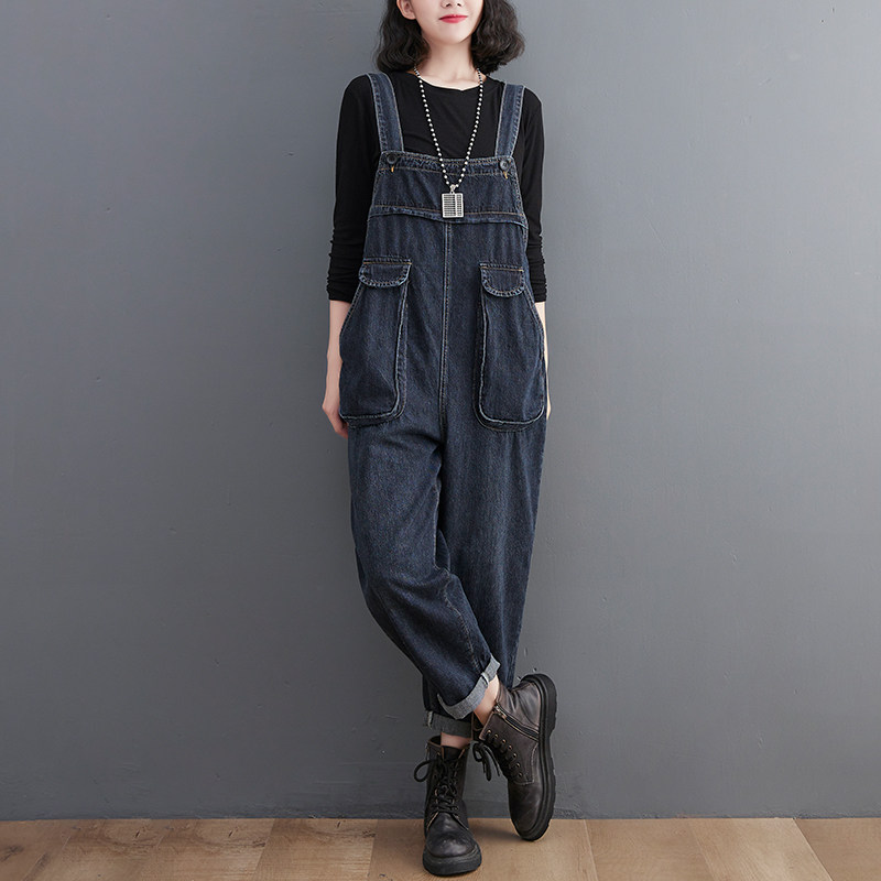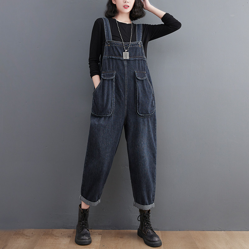 Джинсовый осенний комбинезон, штаны, в корейском стиле, большой размер, подходит для подростков, эффект подтяжки