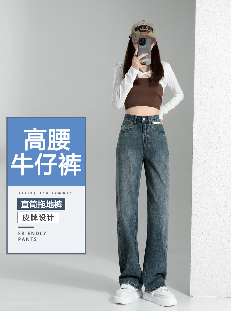 卡希琳 Джинсы, весенние штаны, тренд сезона, подходит для подростков, высокая талия, свободный прямой крой