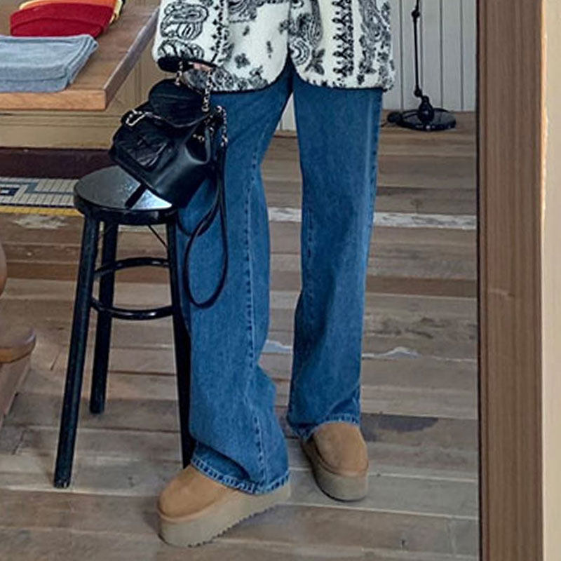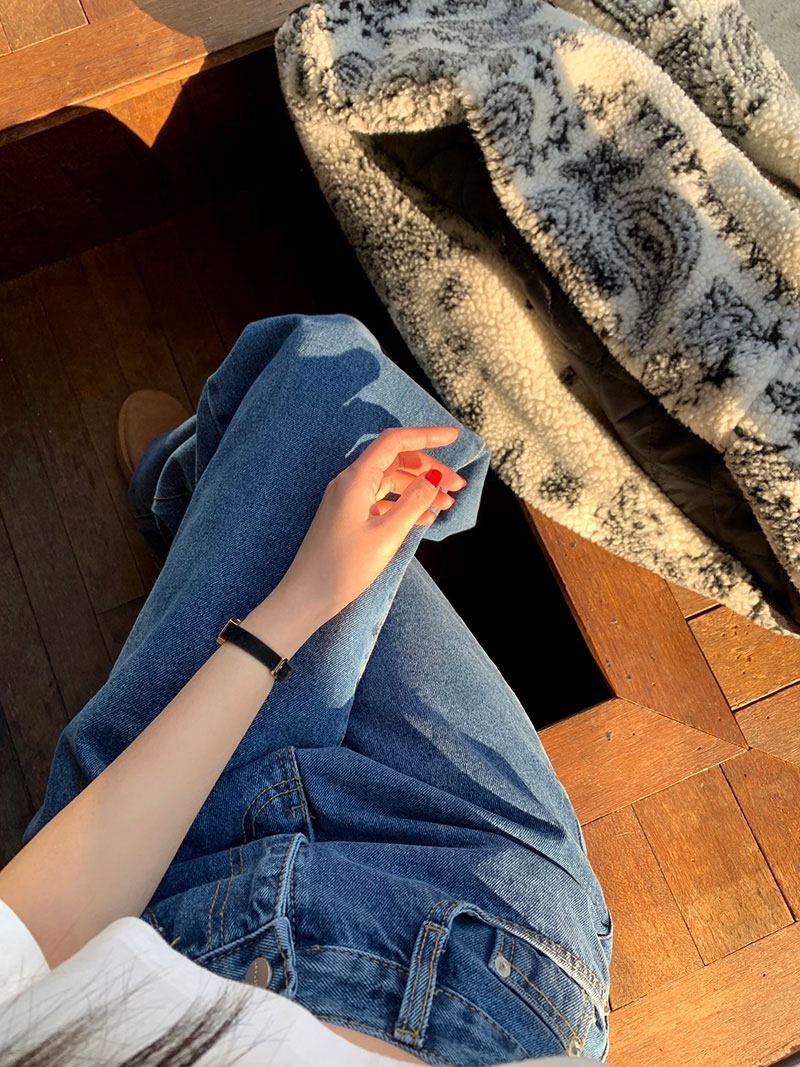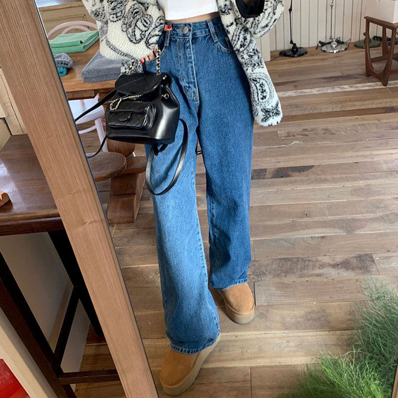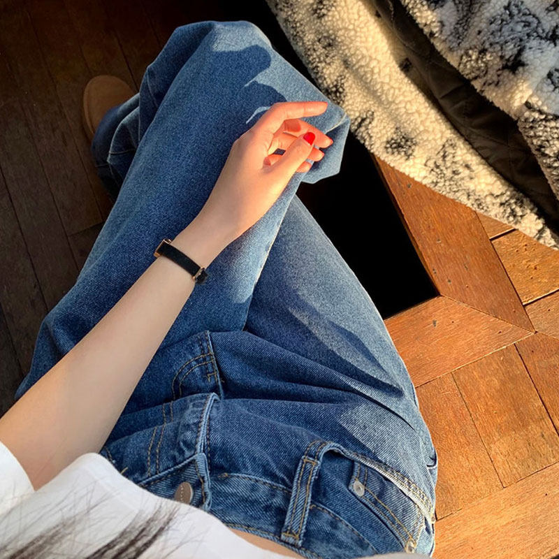Весенние приталенные дизайнерские джинсы для отдыха, штаны, в корейском стиле, высокая талия, свободный прямой крой