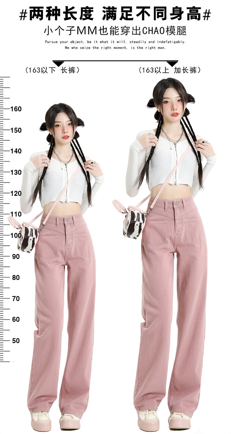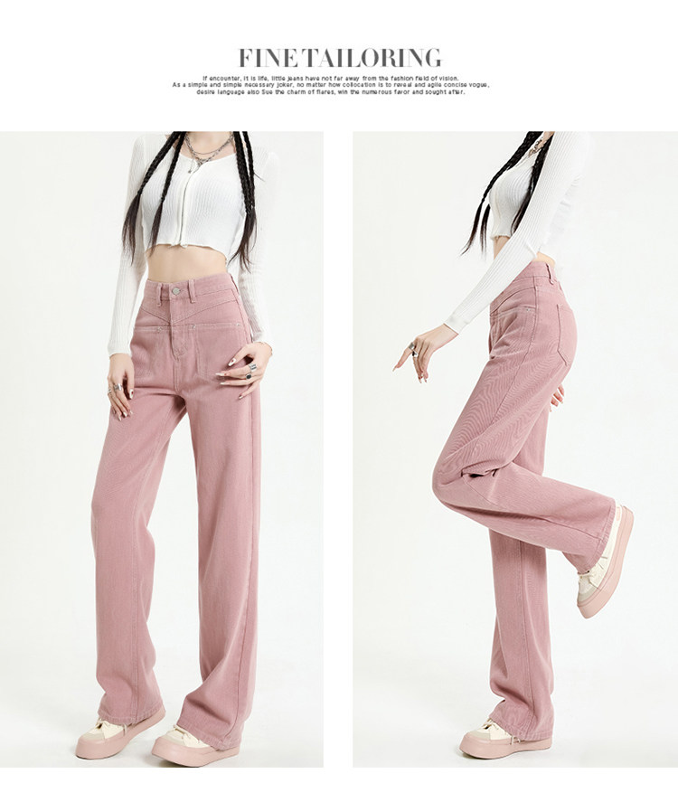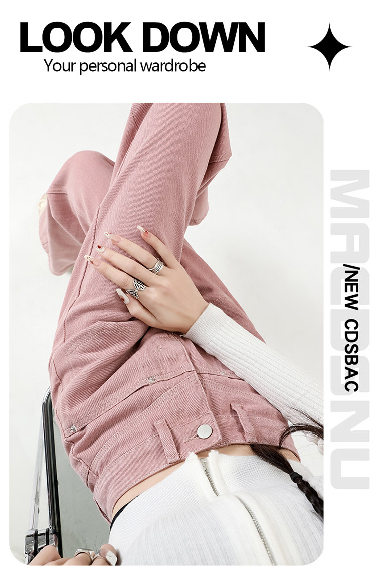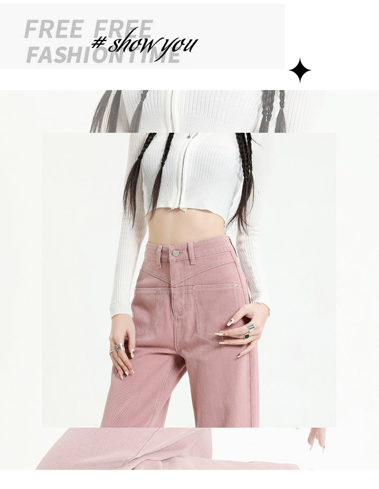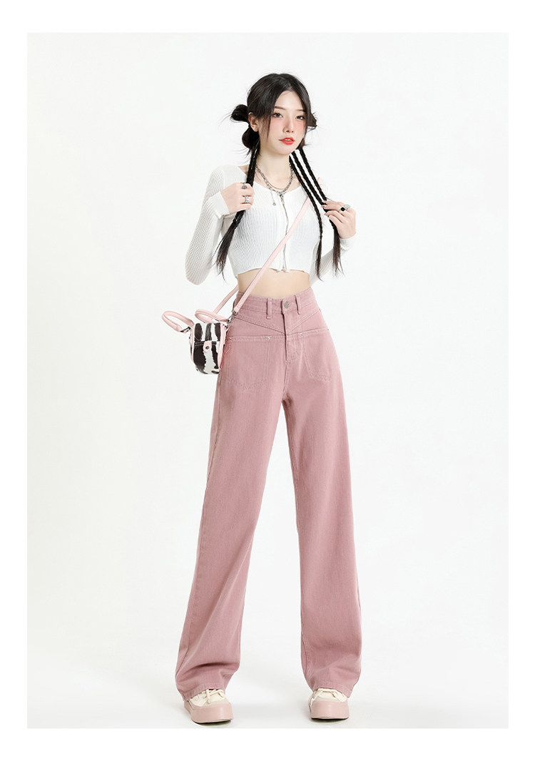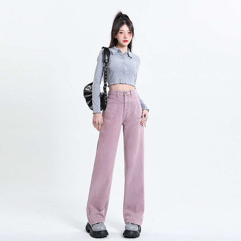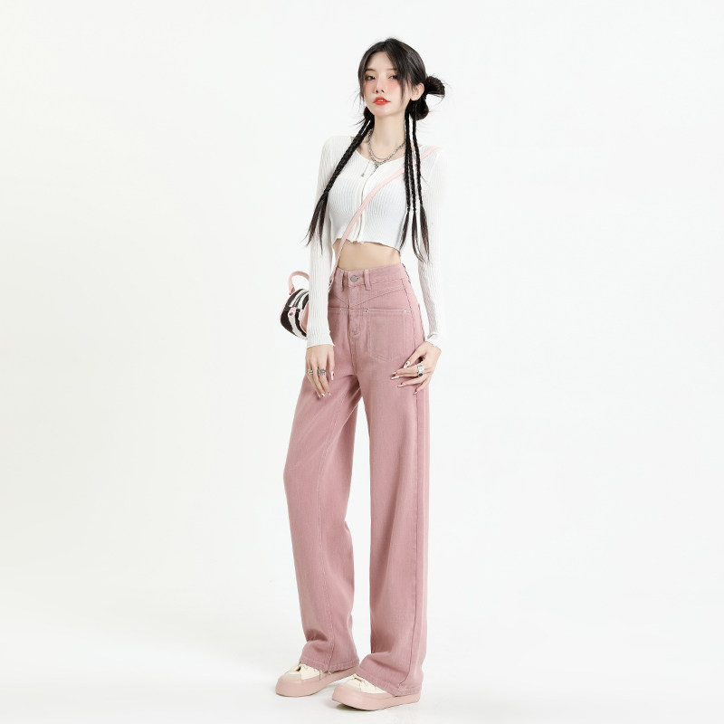 Розовые осенние джинсы, приталенные штаны, 2025 года, высокая талия, свободный прямой крой