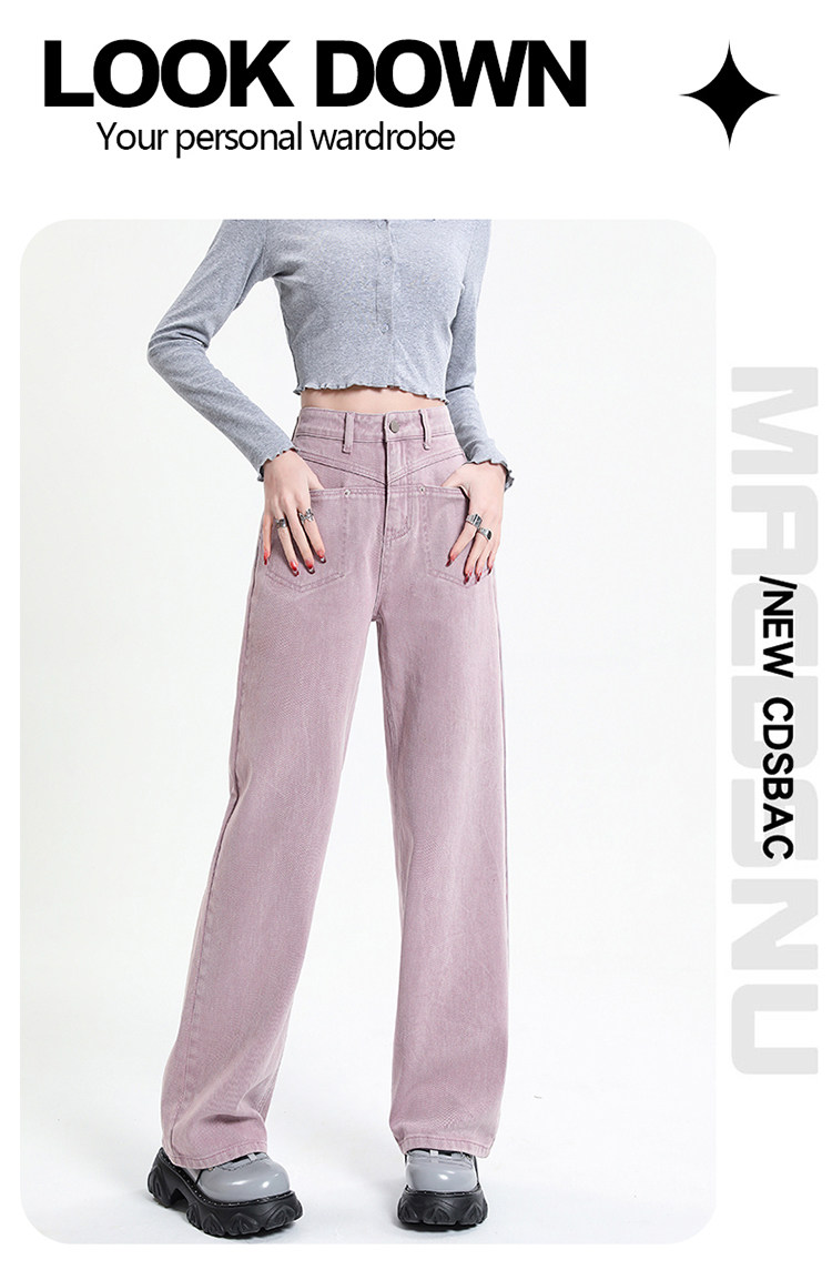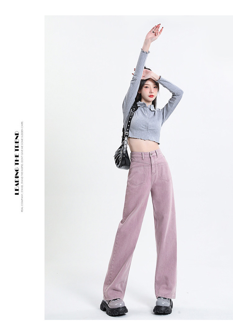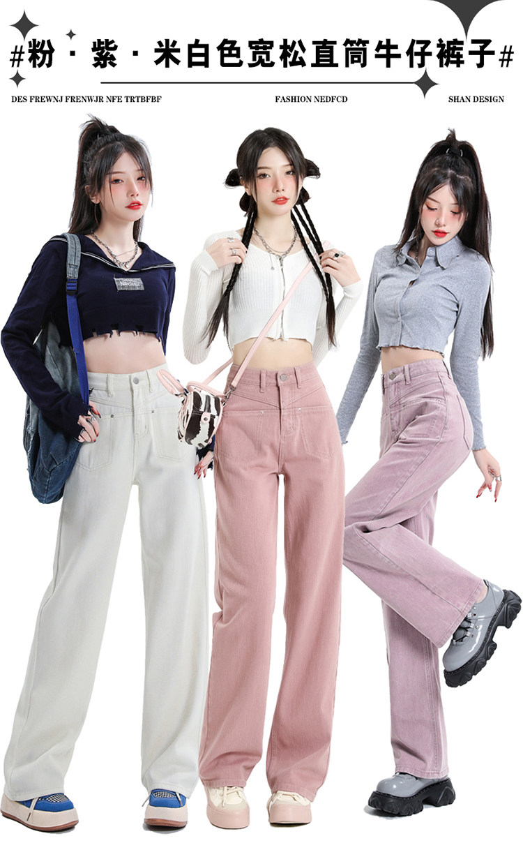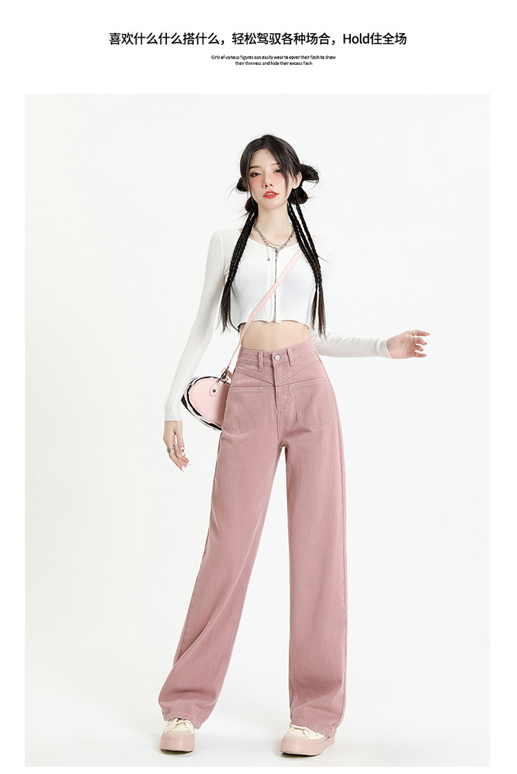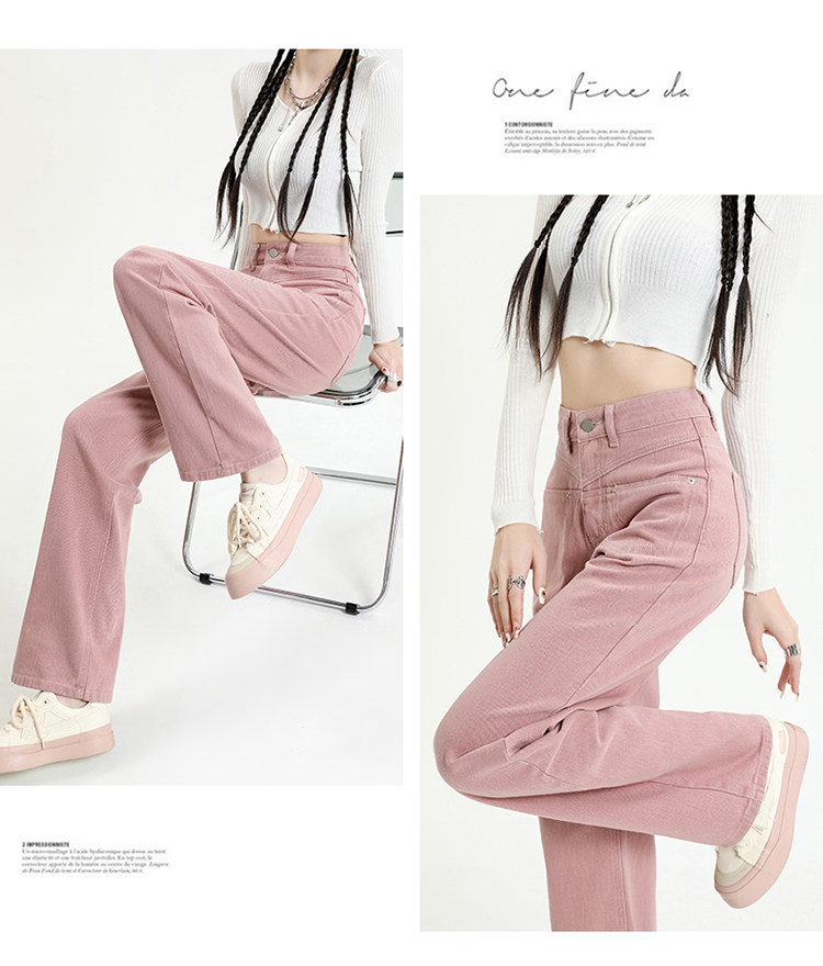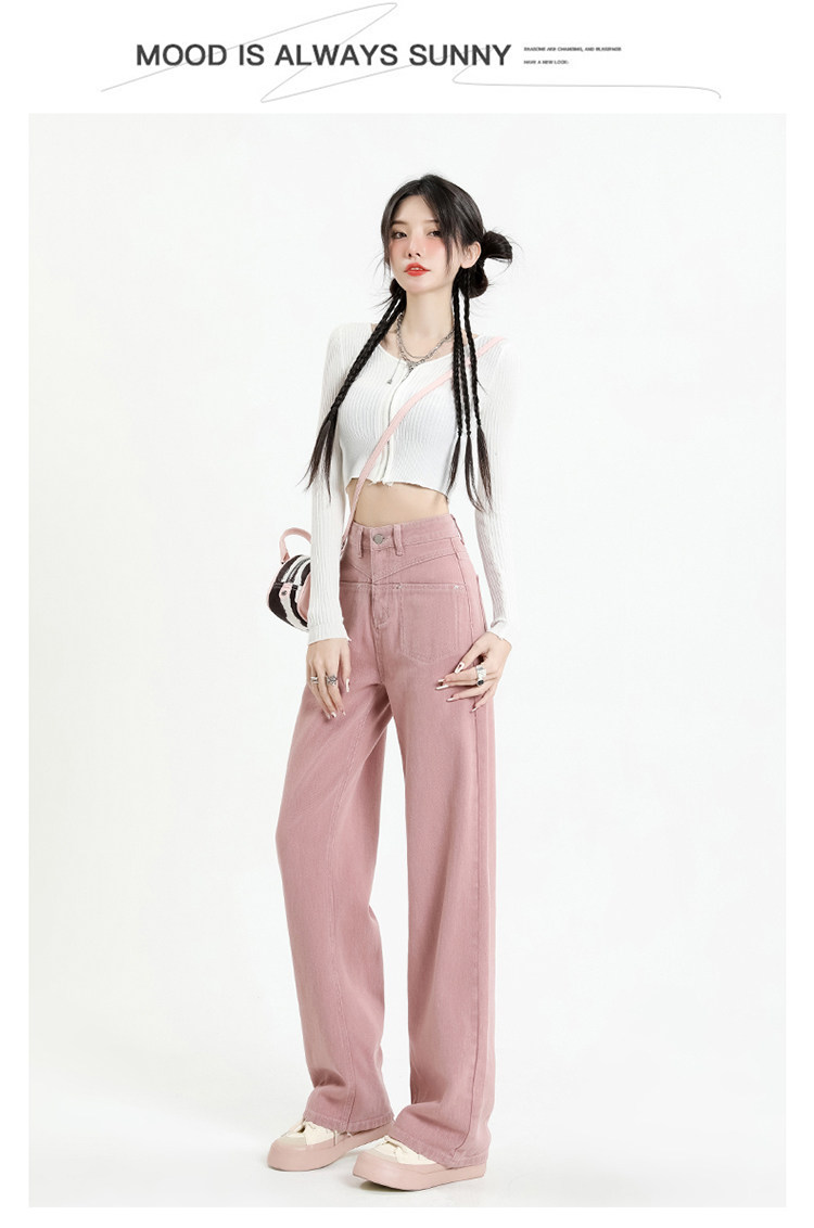 Розовые осенние джинсы, приталенные штаны, 2025 года, высокая талия, свободный прямой крой