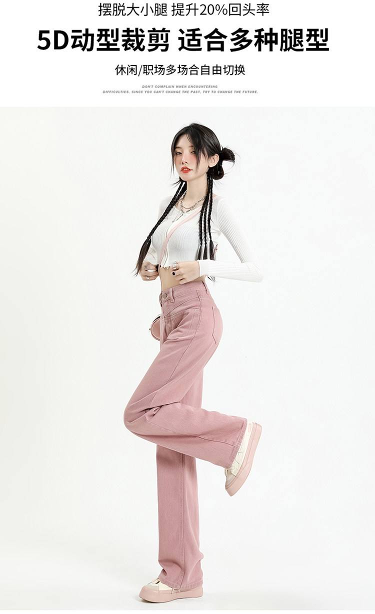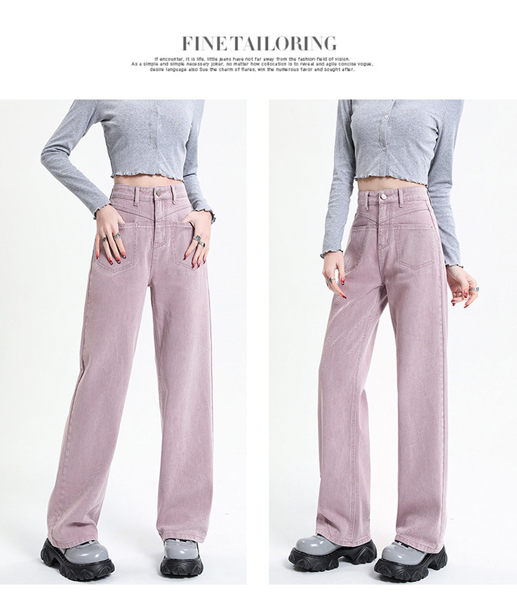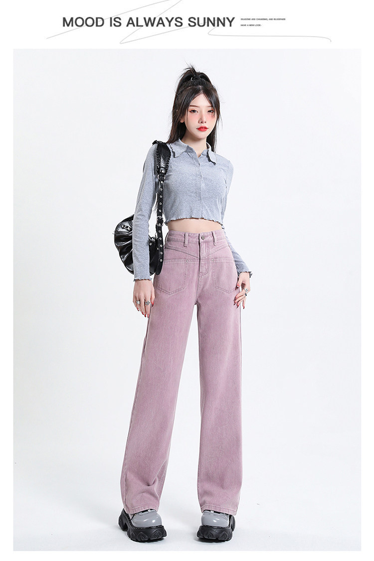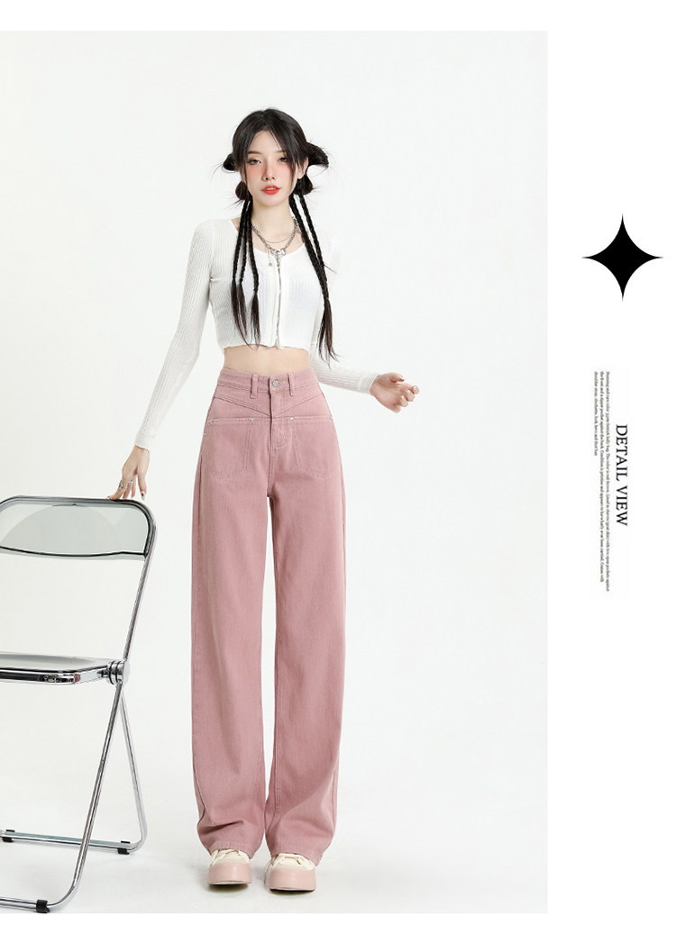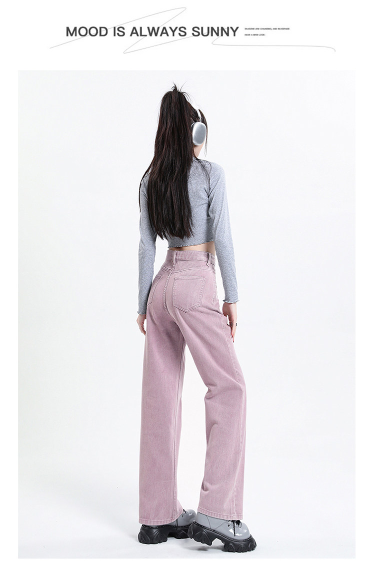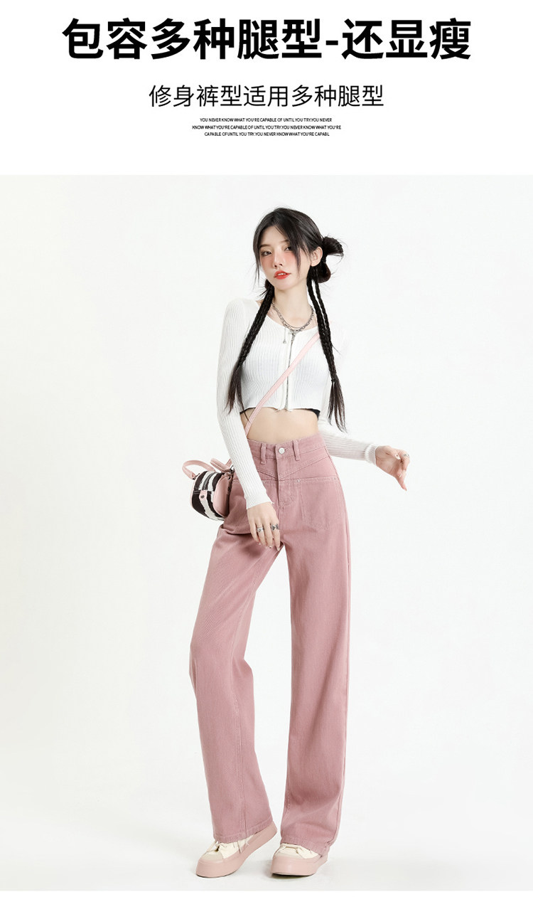 Розовые осенние джинсы, приталенные штаны, 2025 года, высокая талия, свободный прямой крой