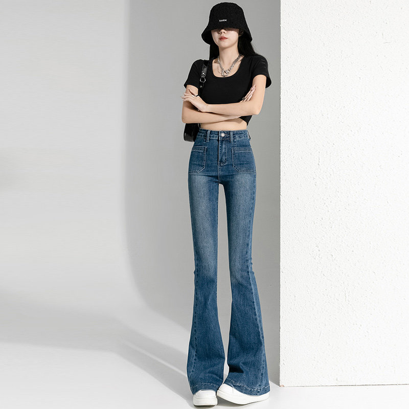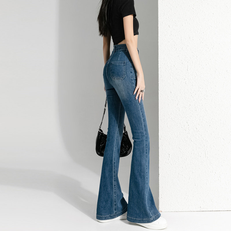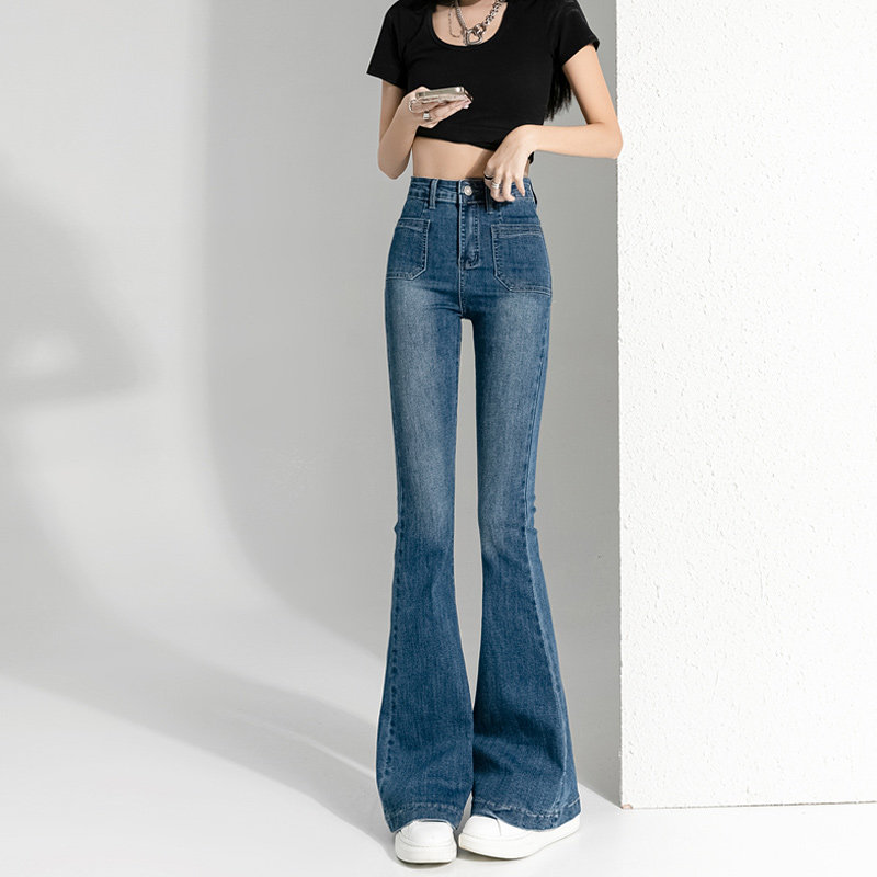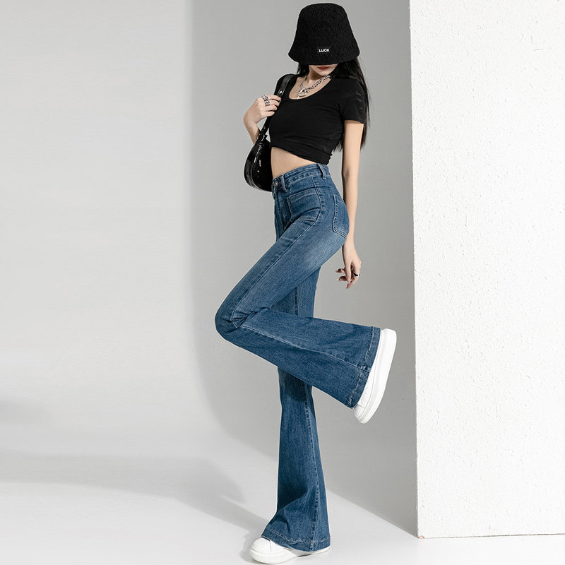 Весенние осенние джинсы, штаны, приталенные штаны-клёш, коллекция 2023, высокая талия, подходит для подростков