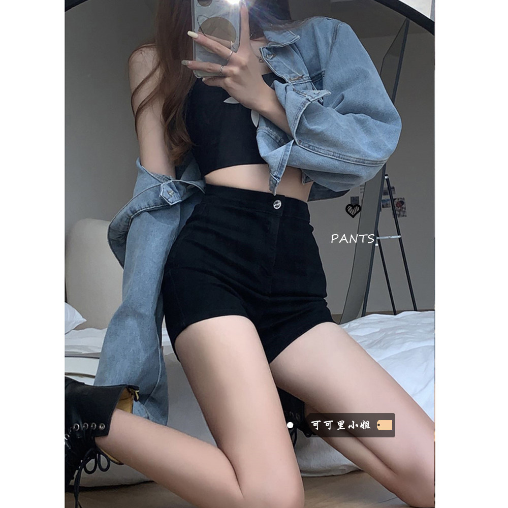 Летние черные джинсы, штаны, шорты, высокая талия, в обтяжку, А-силуэт