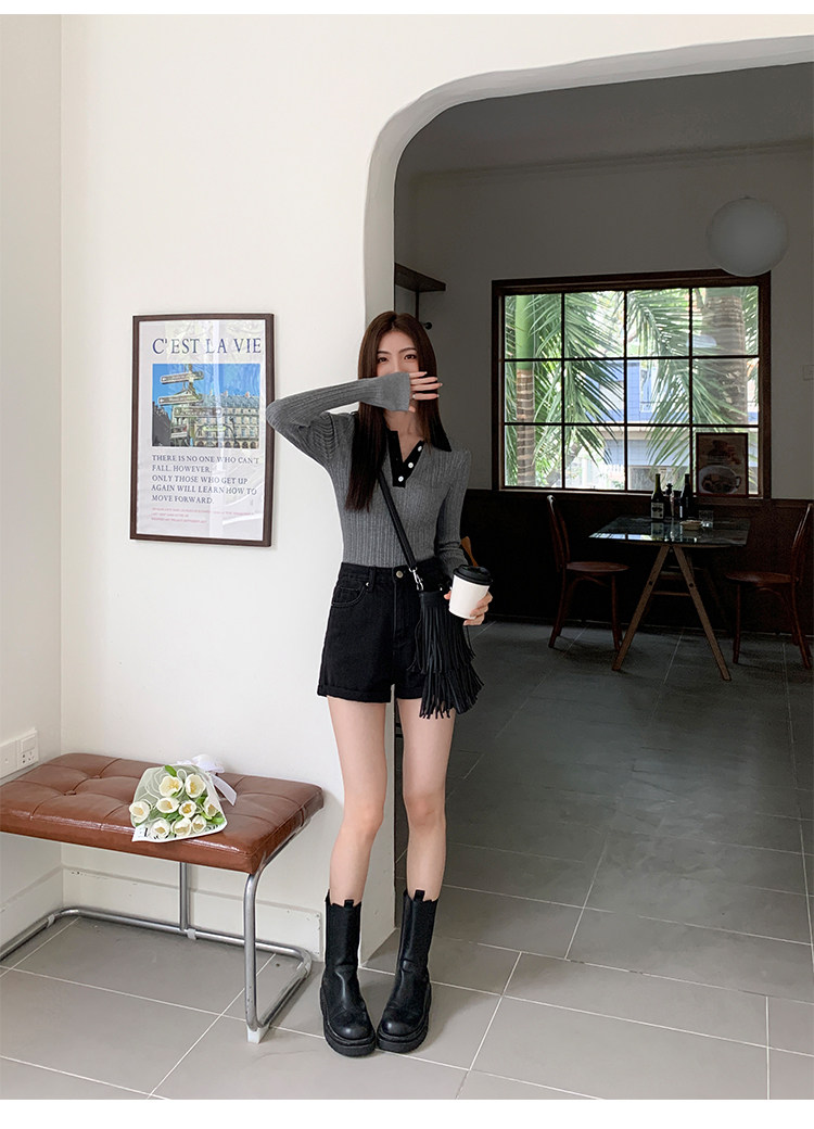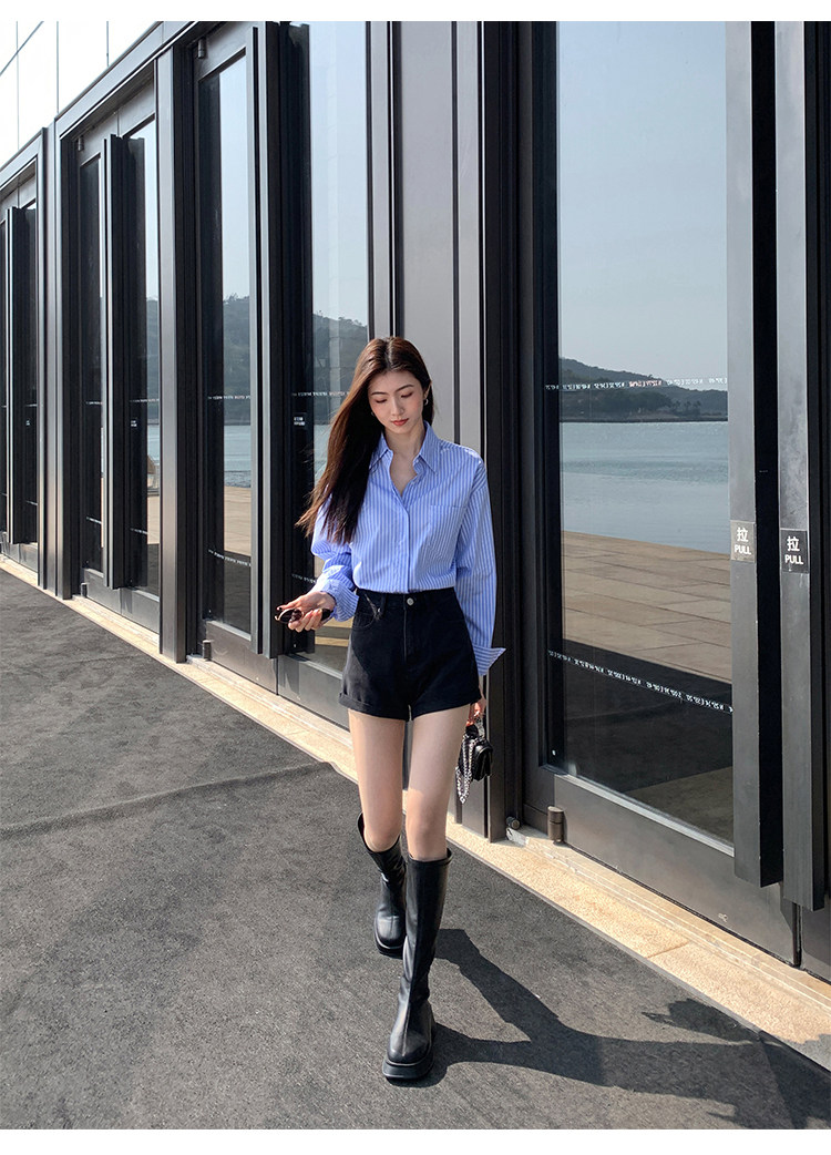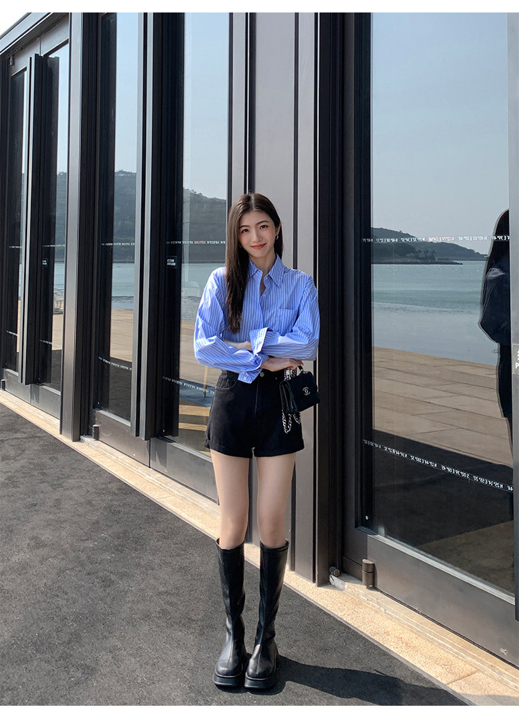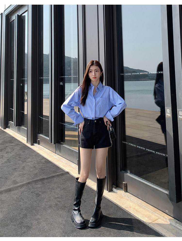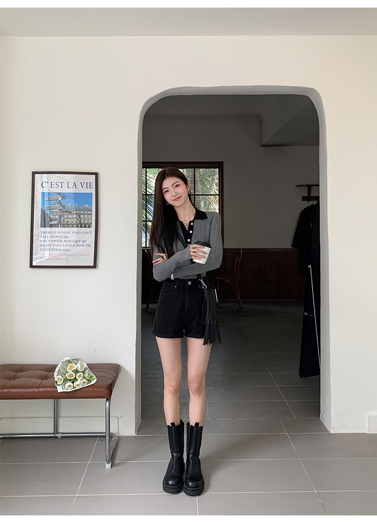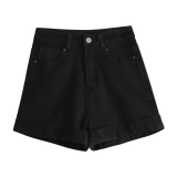 Черная цветная джинсовая юбка, шорты, весенние штаны, высокая талия, свободный крой