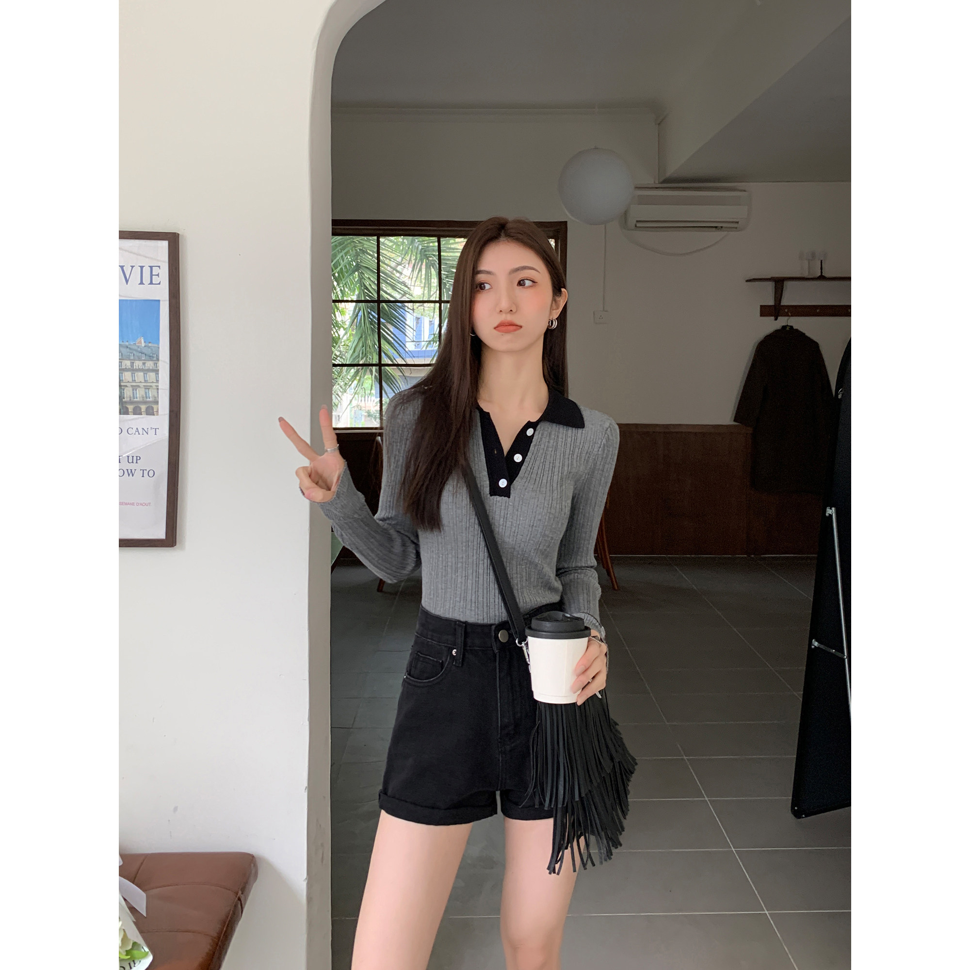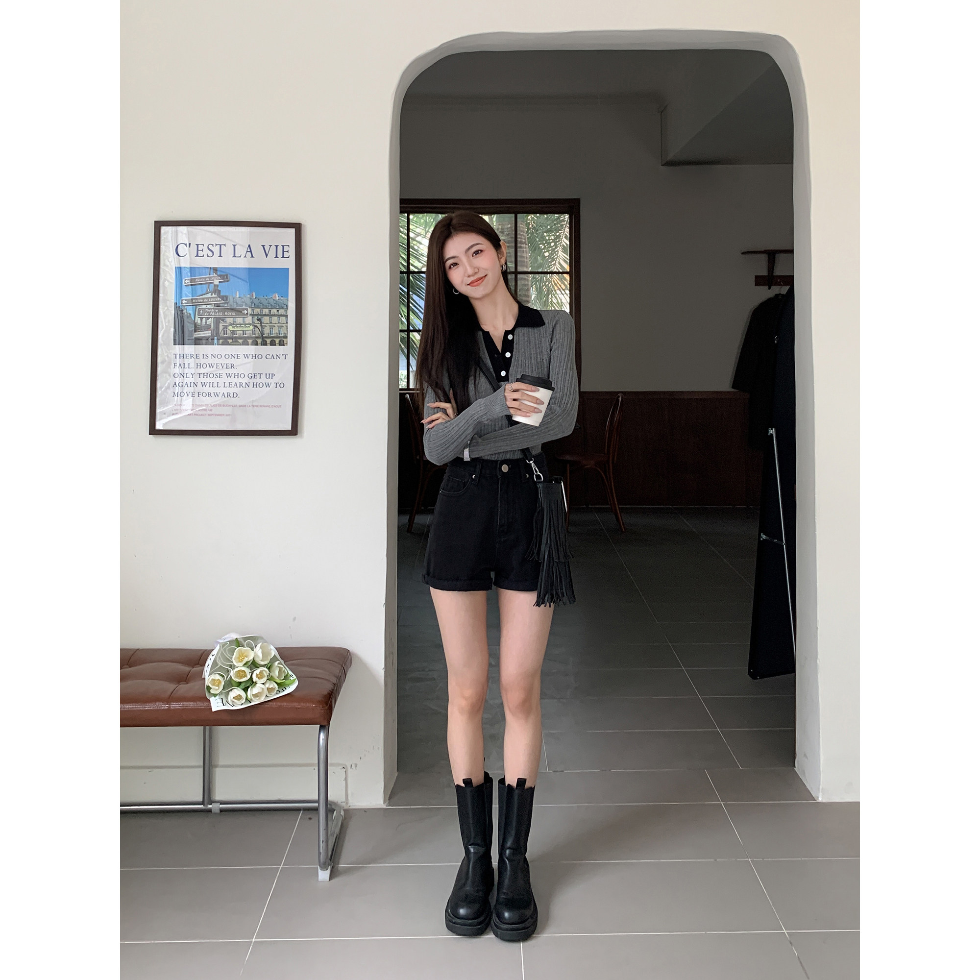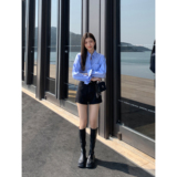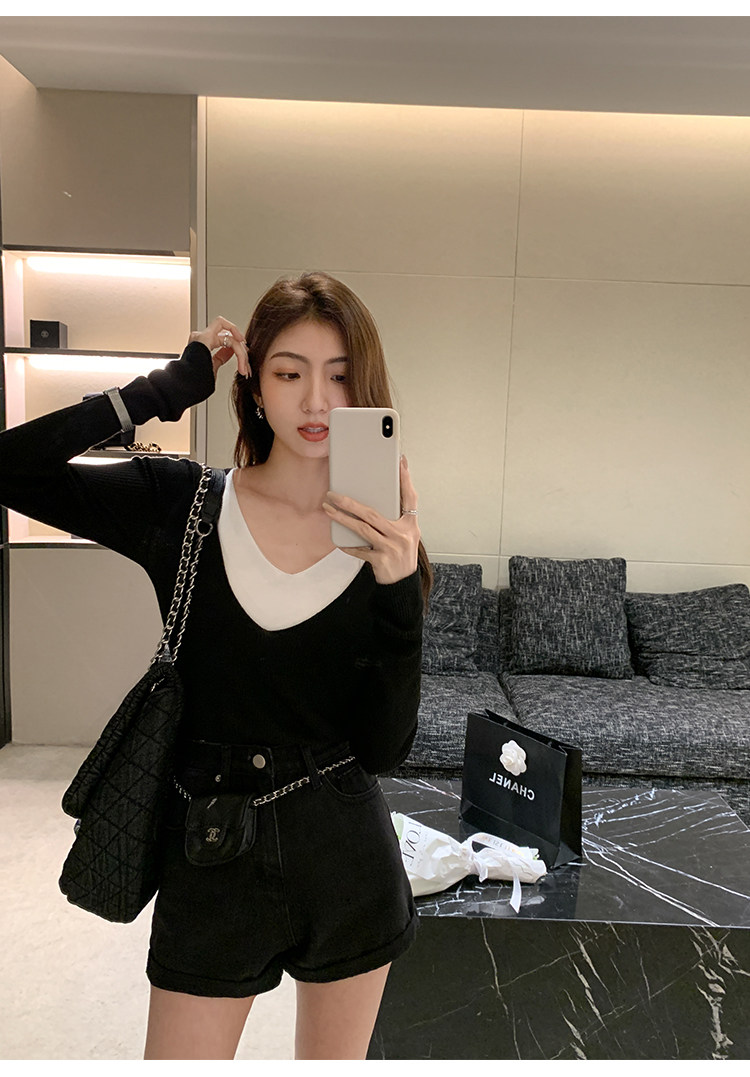 Черная цветная джинсовая юбка, шорты, весенние штаны, высокая талия, свободный крой