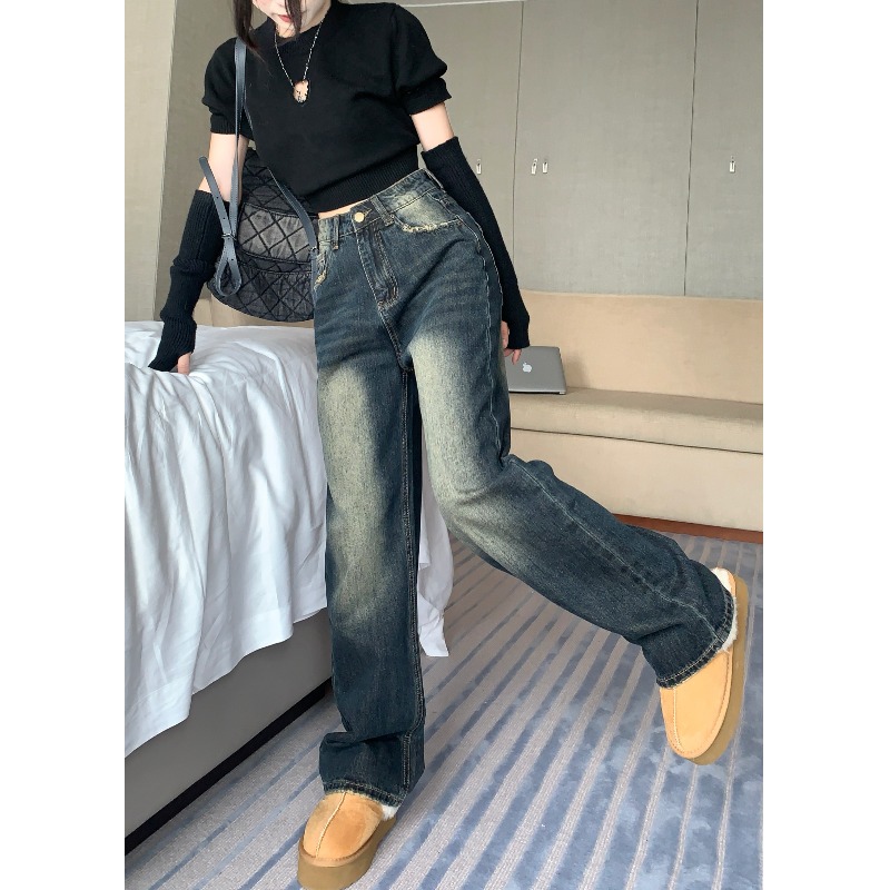 Ретро весенние джинсы, штаны, высокая талия, свободный прямой крой