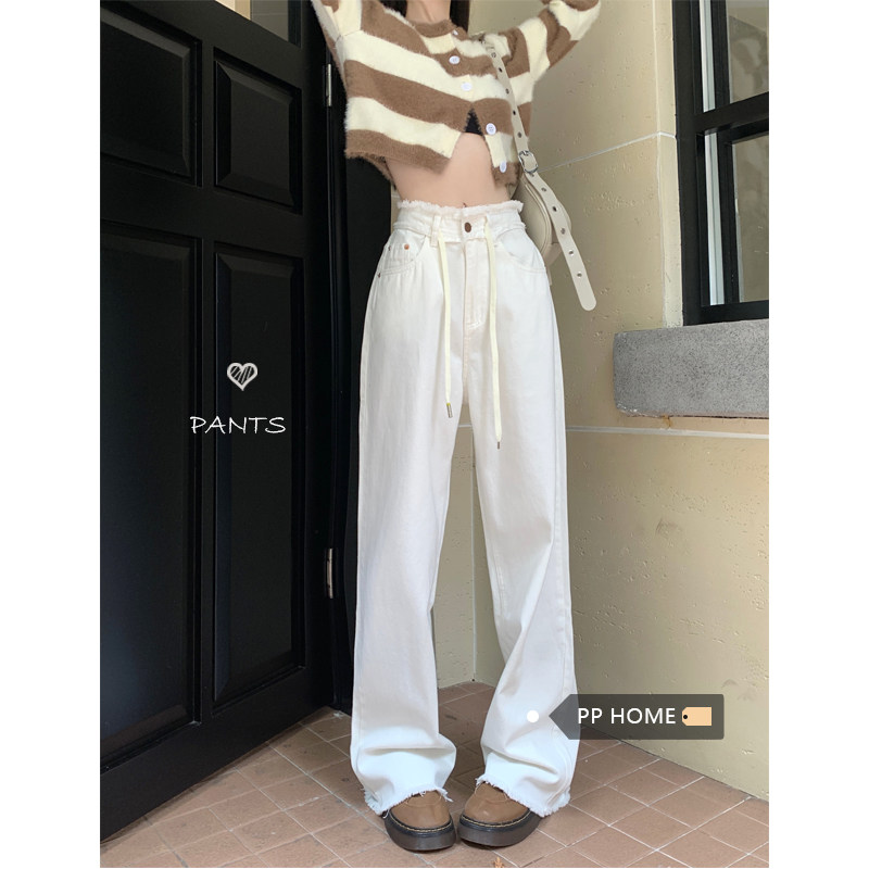 Белые прямые свободные джинсы, штаны, высокая талия, свободный крой