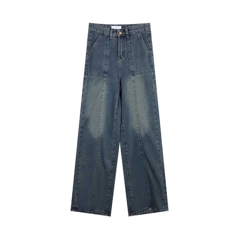 Ретро штаны, джинсы, в американском стиле, свободный прямой крой, по фигуре
