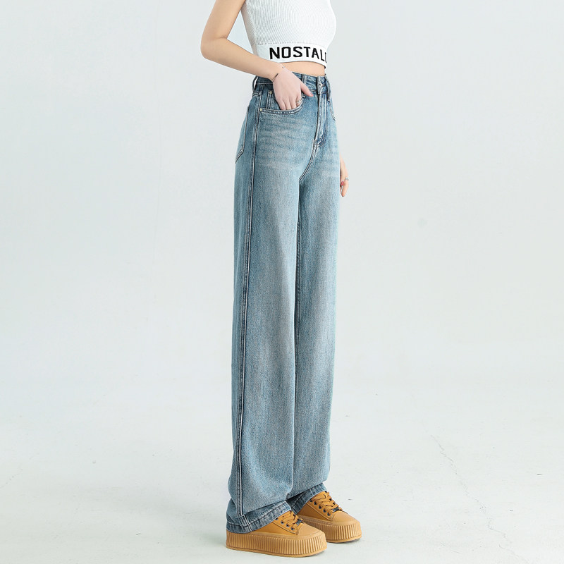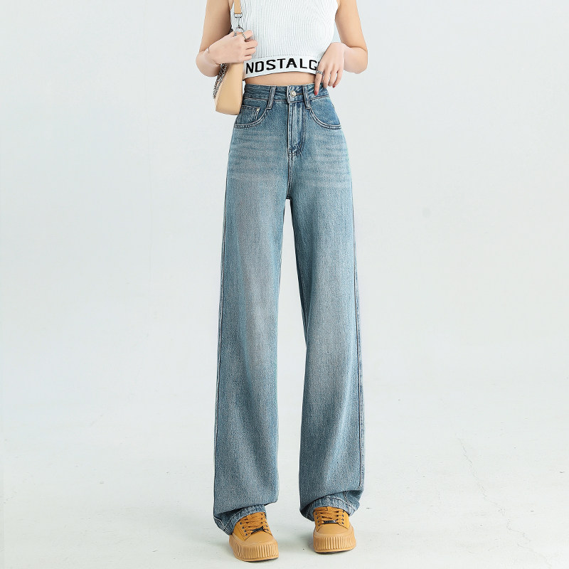 Джинсы, летние штаны, 2024 года, высокая талия, свободный прямой крой