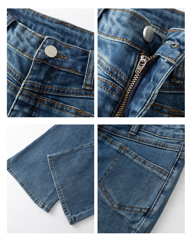 Leng Qiaoer [длинные брюки до бедра] тонкие сексуальные джинсы с высокой талией для девочек темно-синие карманы с микро-вспышками для женщин