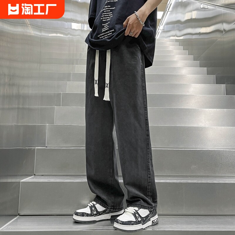 Джинсы, осенние штаны, высокая талия, свободный прямой крой, подходит для подростков, коллекция 2023