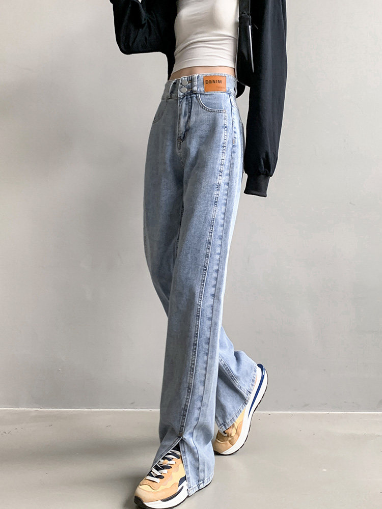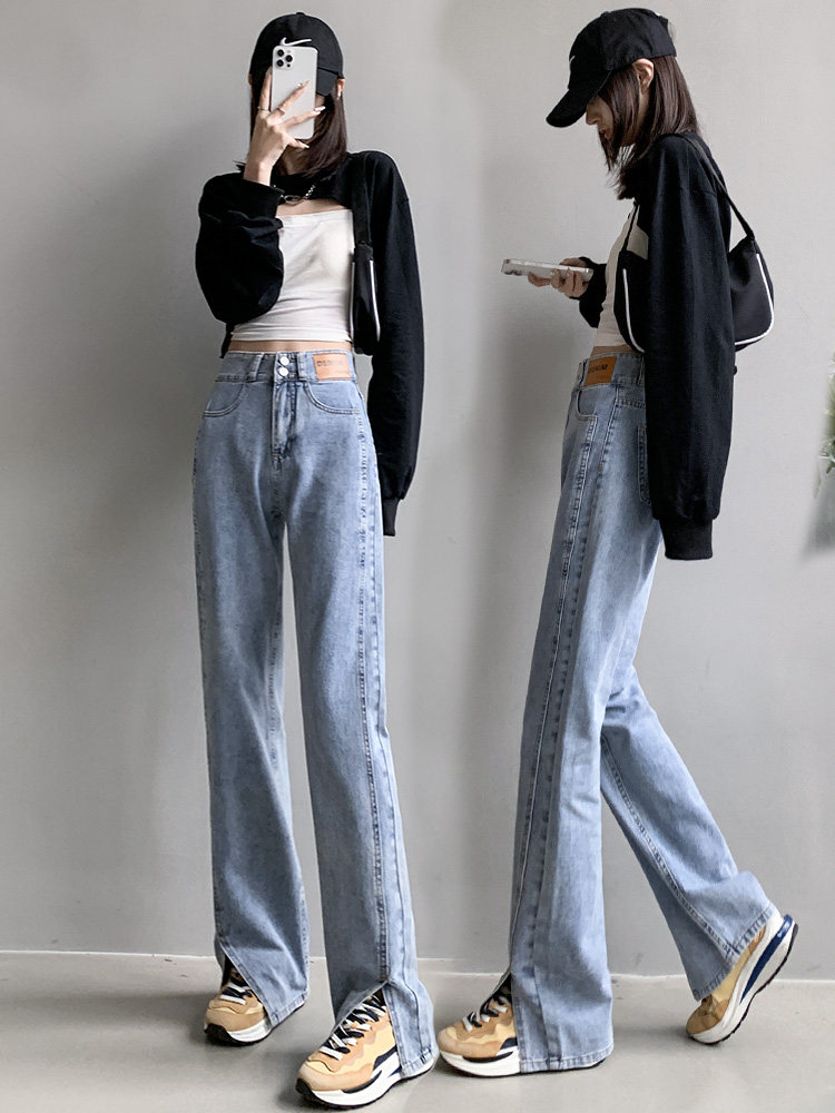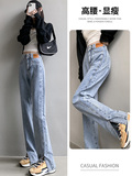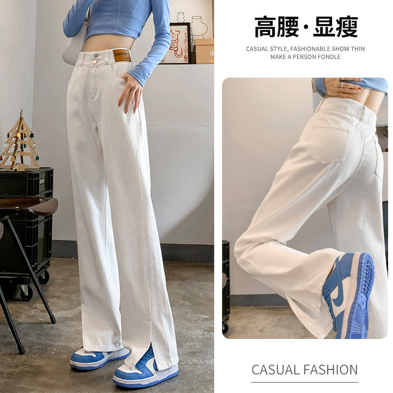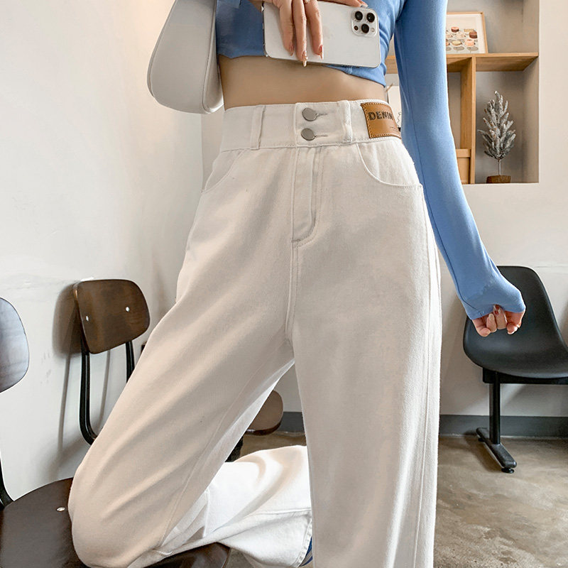 Белые осенние джинсы, штаны, коллекция 2023, высокая талия, свободный прямой крой