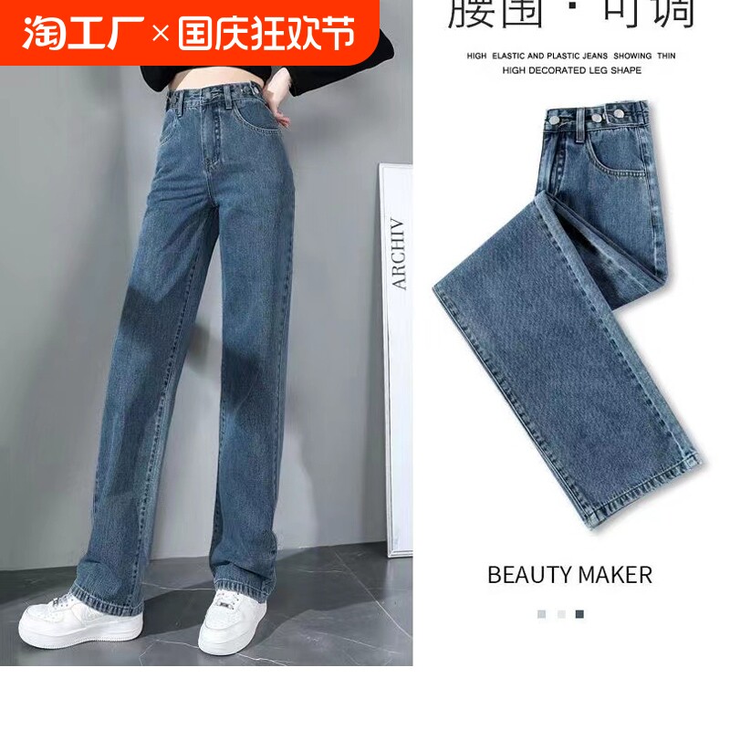 Прямые свободные джинсы, длинные штаны, высокая талия, оверсайз, подходит для подростков, свободный крой, 2023