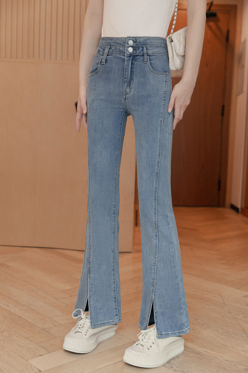 小谷粒 Ретро весенние небольшие джинсы, дизайнерские приталенные штаны, тренд сезона, высокая талия
